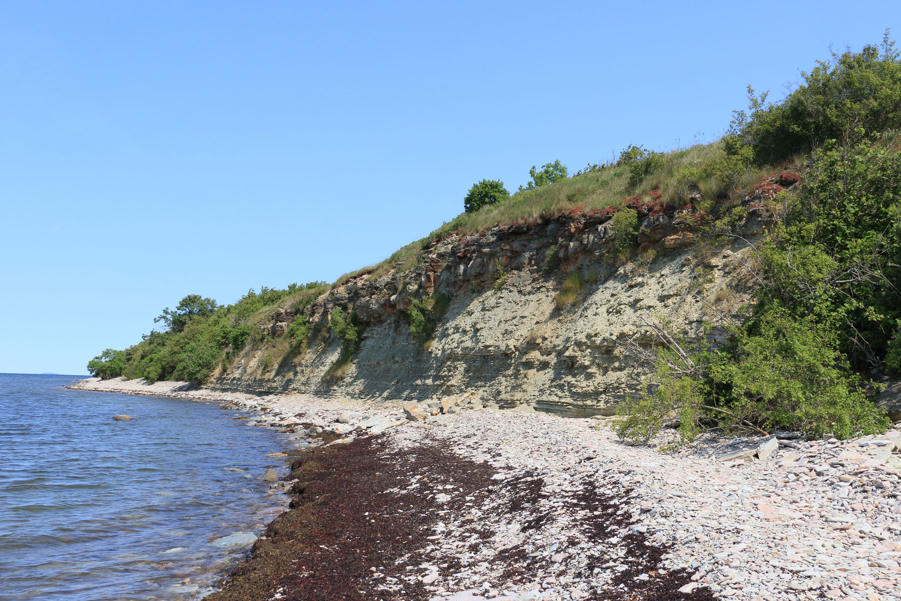 Nere vid strandkanten under Kalmarsunds vattenyta finns sandstenen. Ovan sandstenen kommer diverse lager med lerskiffer, en del hårdare och en del mjukare, vilket tyder på att havsbotten då skiffern bildats varierat i miljö. Ovan Lerskiffern återfinns alunskiffern som sticker ut ur klinten som svarta tunna boksidor. Den bildades då havsbottnen var syrefattig under äldre delen av ordovicium. Alunskiffer har en hög andel organiskt material och har en svag doft av petroleum. Förr använde man den som bränsle när man brände kalk i kalkugnar. I alunskiffern har det också bildats runda stenar, orstenar. Överst på landborgsklinten finner vi ett metertjockt lager kalksten. Uppe på landborgen finns ett hundratal gravar från järnålder och vikingatid, de mindre märks mest som små kullar i landskapet. De större ser man tydligt som rösen.