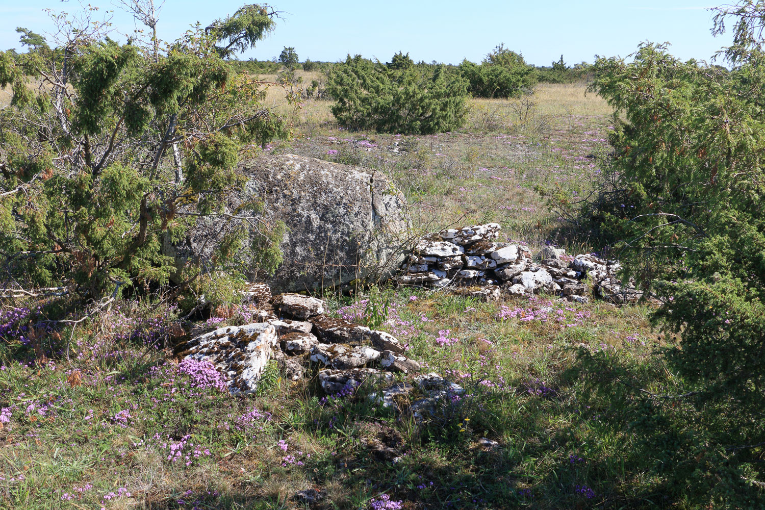 Denna koja har byggts mot ett stor stenblock på nordsidan (56.53786, 16.48575) närmast tresidig, 3 x 3 meter (N-S). Muren är 0,3 meter bred, intill 0,5 meter hög av 0,2 - 0,5 meter stora kalkstensflisor och lagd i 5-6 skift. Stenblocket är 0,9 x l ,3 meter stort och 0,9 meter högt. Öppning mot söder. Kojan är något raserad. Bevuxen med enbuske och nypon. stenarna är rikligt beväxta med lavar och mossor. Osäker lämning. Anläggningen är antagligen samma som raä nr. 28:2 enligt fornlämningsregistret Där har den tolkats som ett röse med klumpsten.