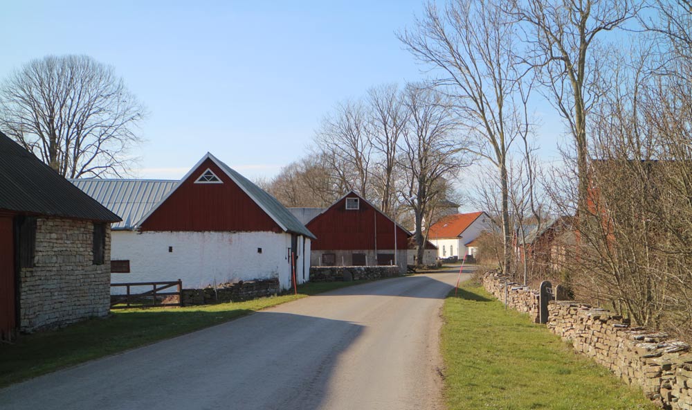 Byns bebyggelse är välbevarad. Här finns sammanbyggda ladugårdslängor med dösade hörn uppförda både i skiftesverk och kalksten.