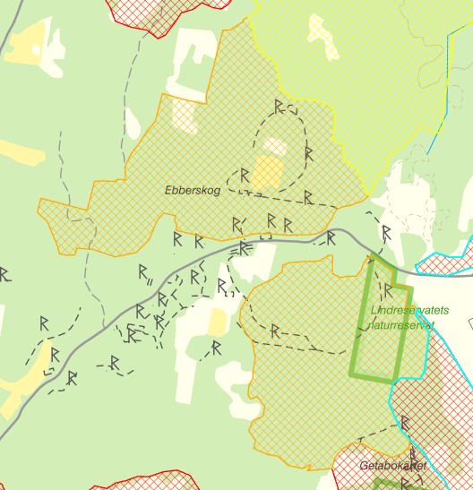 I skogarna finns Ebberskogs fornby med rester av husgrunder och hägnader från järnåldern.