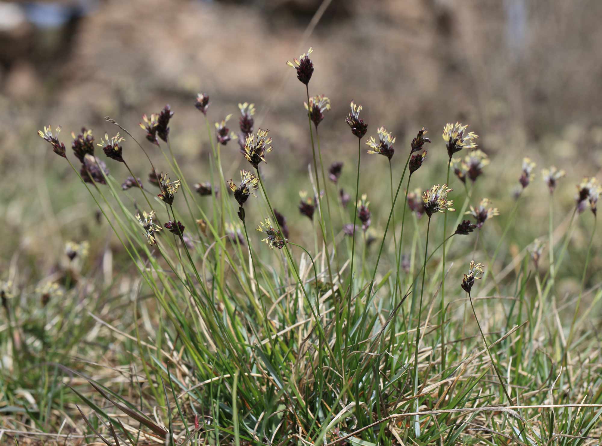 Arten blommar i maj-juni. Småaxen är mörkt blåvioletta och sitter samlade i en tät, äggrund, axlik vippa. Efter blomningen förlorar vippan sin vackra färg och blir gråaktig.
