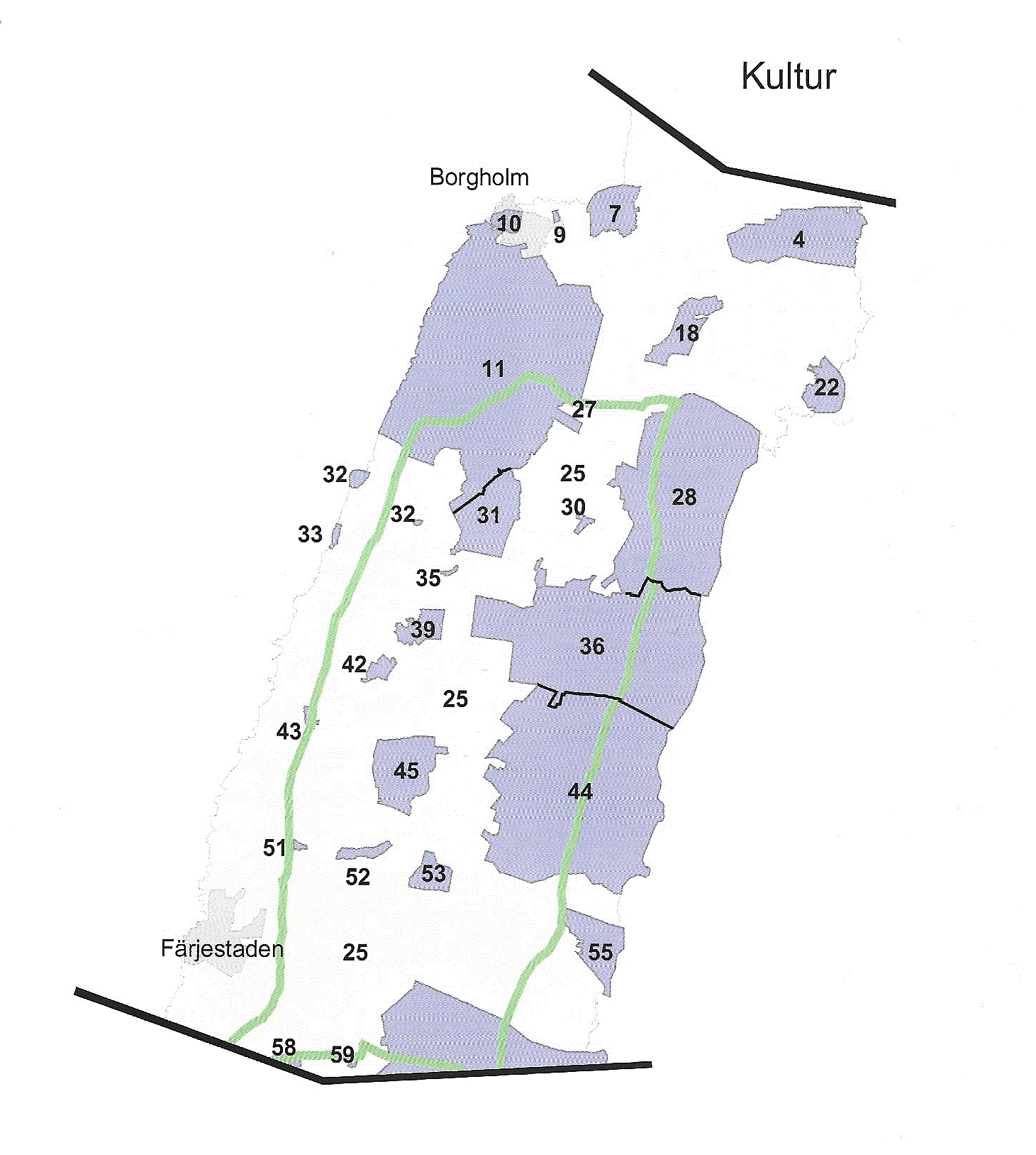 En del områden beskrivs i AlltPåÖland under Platser. De markeras med länkar. Övriga beskrivs på denna sida.