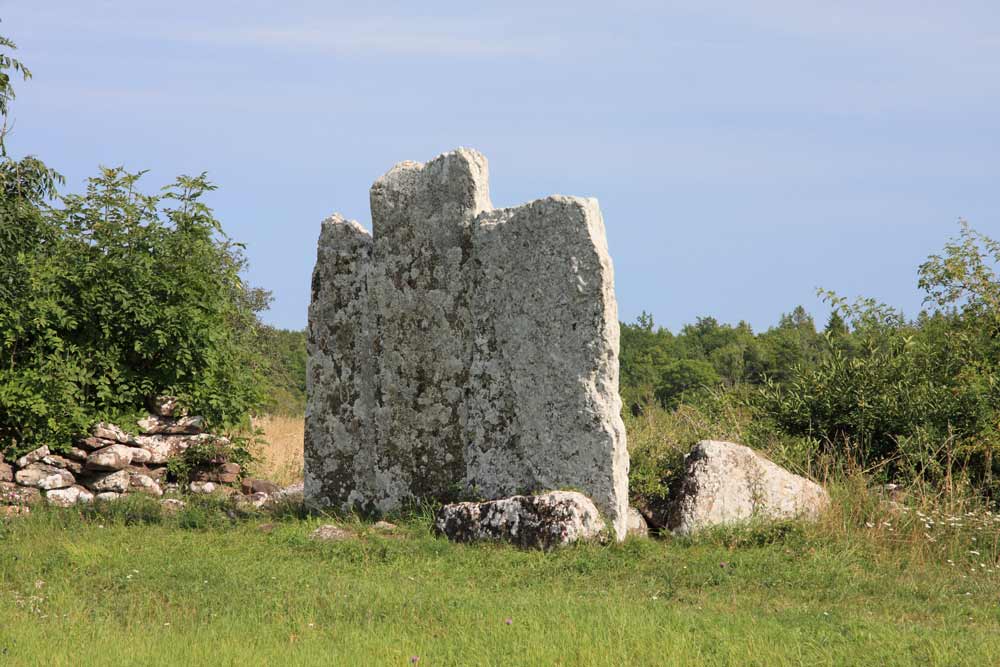 Järnåldersgravfält med två mäktiga, resta kalkstensflisor med en tradition om asaguden Oden