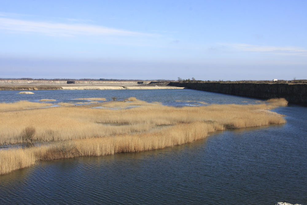 Kalkbrottet är främst en vår- och sommarlokal. I slutet av april anländer gråhakedoppingarna som häckar med flera par. Senare i april finns goda chanser att se pungmes. Från vassområdena hörs rörsångare. Änder som ofta besöker dammarna är småskrake och vigg, men också brunand och knipa kan ses. Här finns också häckande backsvalor i den sydöstra delen av den lilla dammen och i det stora kalkbrottet. I stället för sandtag har de här valt håligheter i kalkstensbranten. De närmsta grannarna är hussvala och tornseglare.