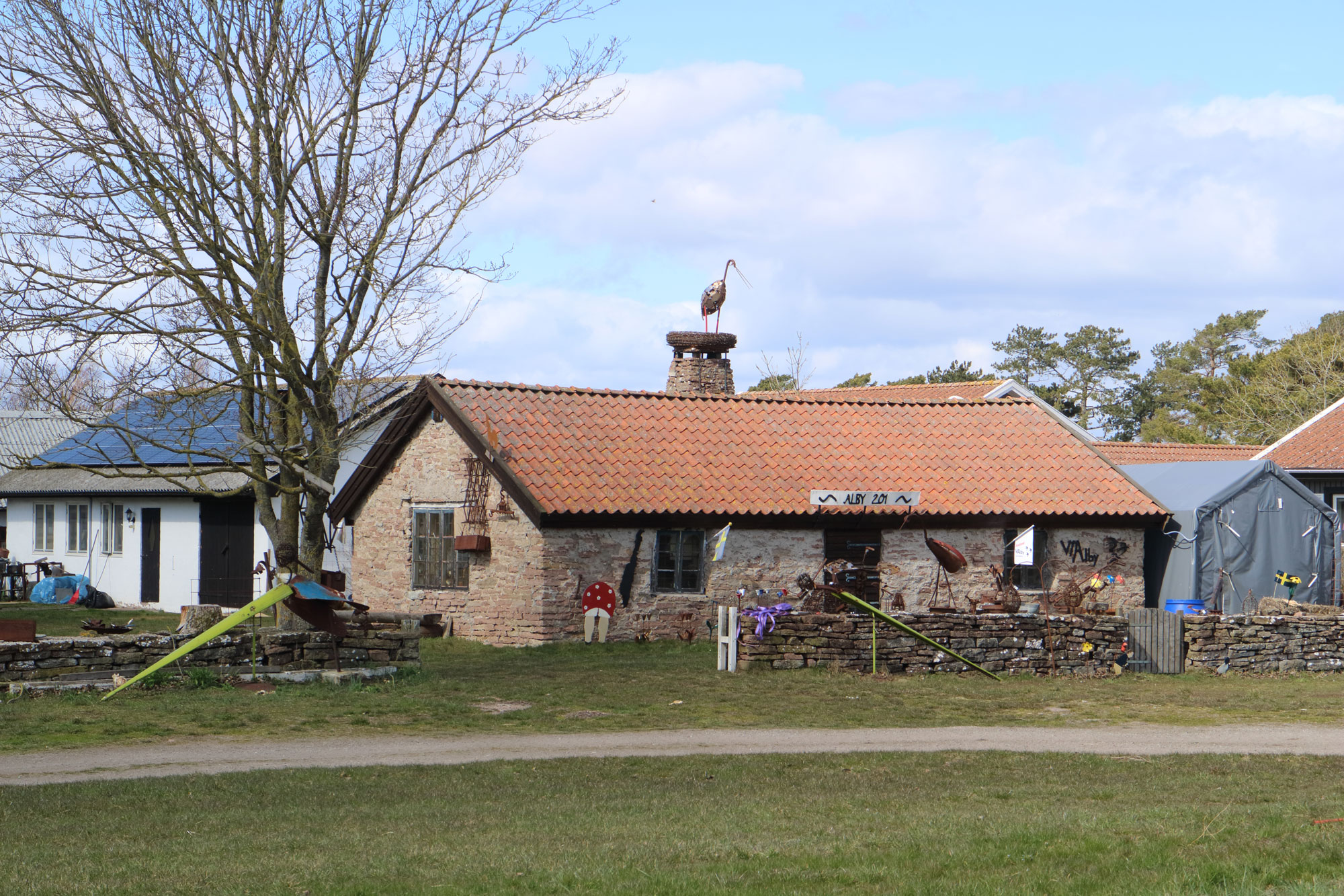 Detta är Alby gamla bysmedja. Idag finns Hantverk Viaalby i smedjan. Sedan 2014 har man tagit fram olika hantverk och erbjuder även tjänster inom byggnadsvård och byggnadsarbeten.
