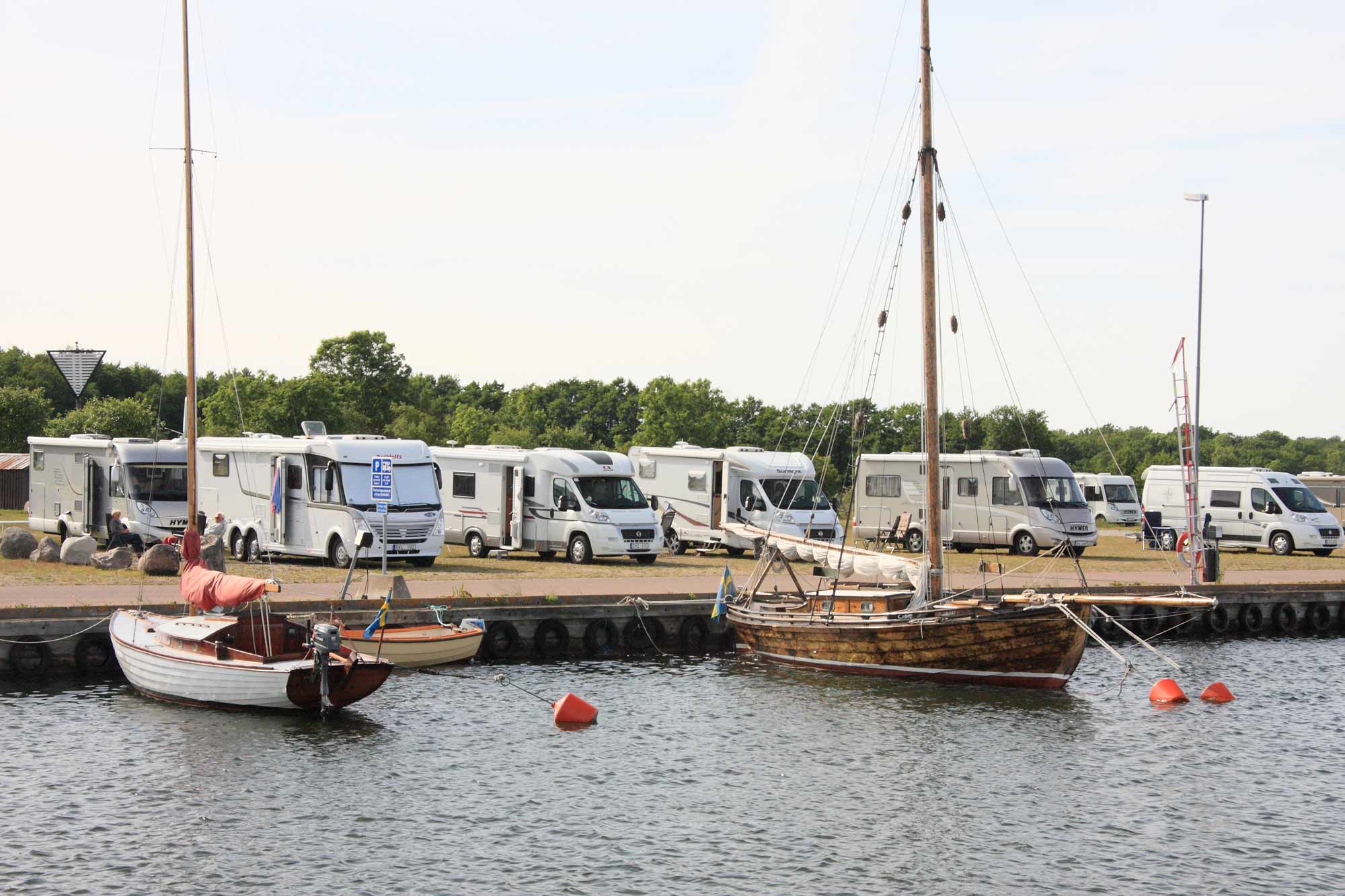 Ställplats för husbilar vid Böda hamn.