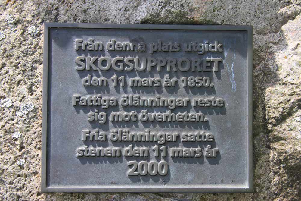 En minnessten i Torp högtidlighåller det s k Skogsupproret i Böda kronopark 1850. Upproret utgick från den plats minnesstenen står på. Händelsen kallas också Bödaupproret eller Ölandsupproret. Upproret handlade om fattiga ölänningars rätt till skogen. Om kanonen på minnesstenen och upproret kan man läsa på en infoskylt vid minnesstenen och i "Öländsk Bygd 1962" (Åkerbo Hembygdsörening). Stenen restes av "Fria ölänningar" år 2000.