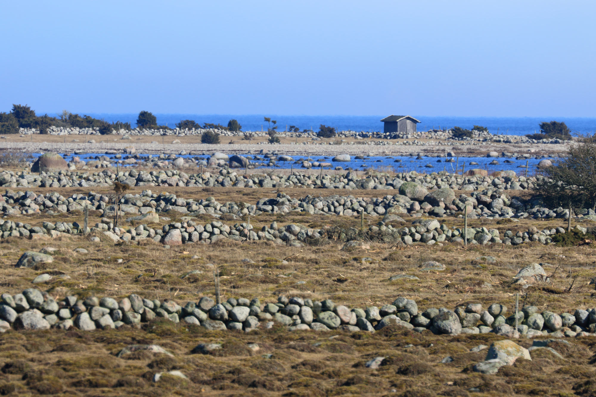 I sjömarkerna finns ett område med ett tiotal husgrunder med tillhörande stensträngar. Här finns också små gravfält och ensamliggande stensättningar och rösen. Till en av de större stensättningarna, 17 m i diameter, hör en gravhägnad, en fornlämningsform som då och då uppträder, men vars funktion är svårtolkad.