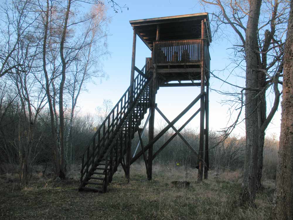 Fågeltorn vid Hornsjön. Det ligger på Klosterholmen. Kan nås från någon av parkeringarna i Horns kungsgårds naturreservat.