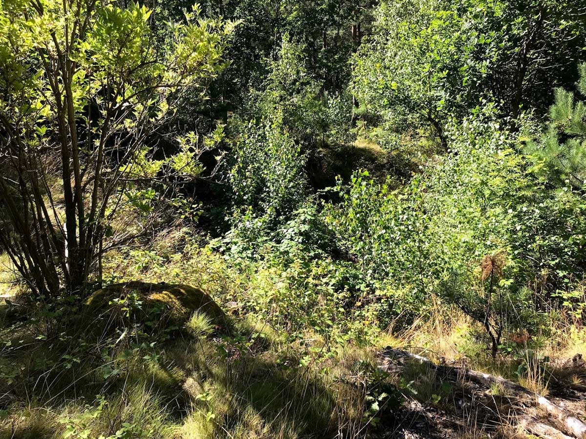 Gropen är delvis igenväxt av unga björkar.