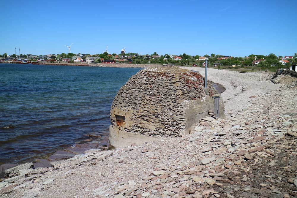Den här bunkern är klädd i kalksten.