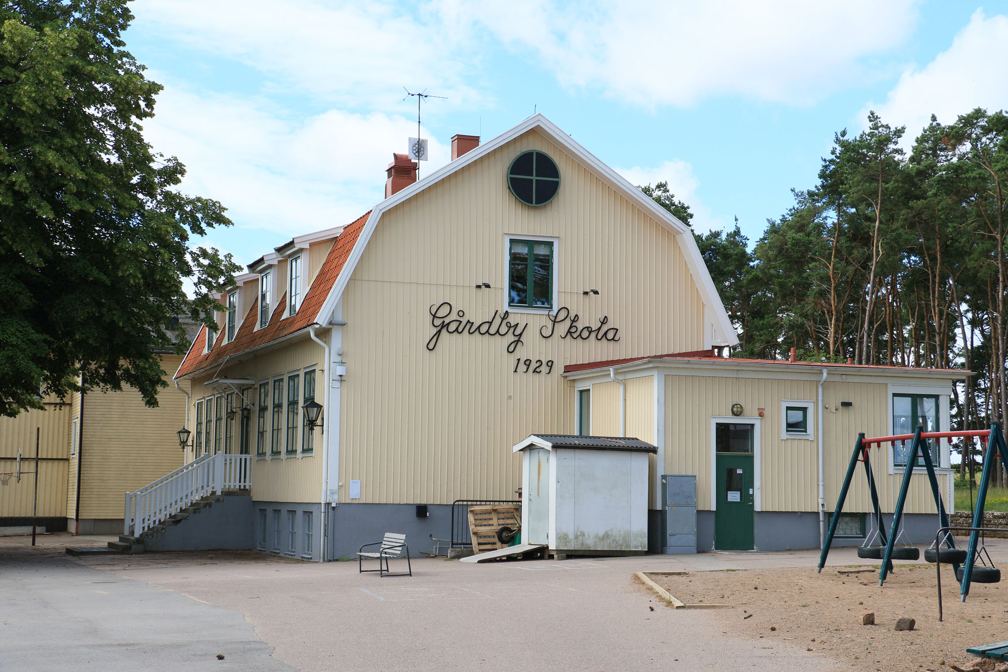 Sedan 1852 har det funnits flera olika skolhus i Gårdby men de nuvarande är från 1929 och 1982. Skolan har haft olika namn såsom Sandgårdsborgs Folkskola och Sandby/Gårdby skola. Det nuvarande namnet fick skolan på 1970-talet.