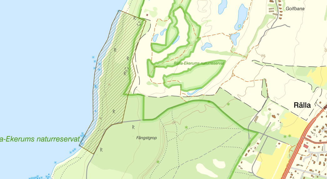 Nära vandringsleden utefter stranden i Rälla-Ekerums naturreservat ligger gravröset i bilden ovan (Högsrum 29:1). Det är 16 m diameter och 1,7 m högt.