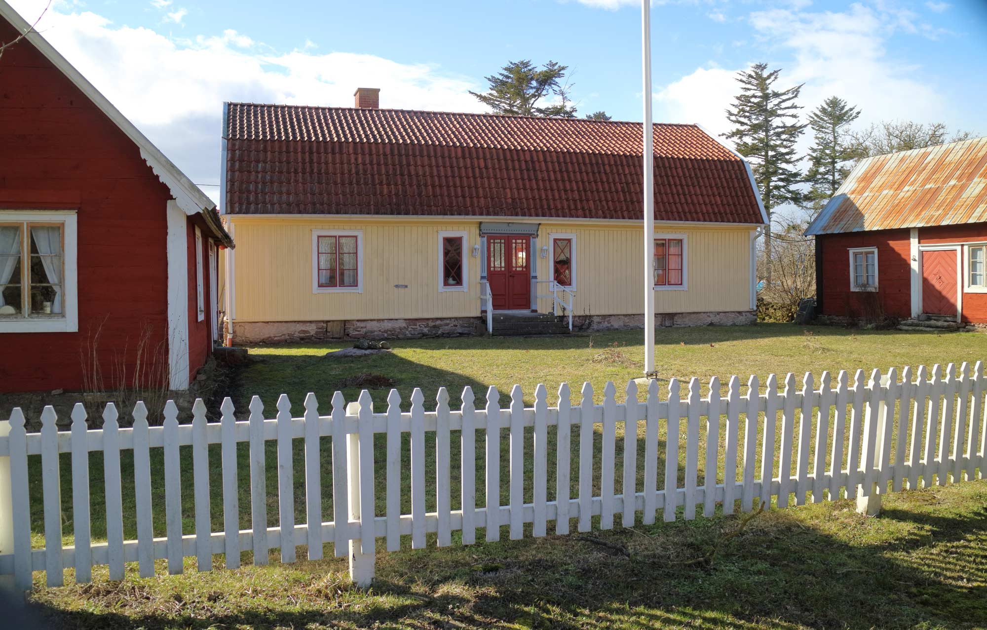 Detta är Gärdslösa hembygdsgård, som ligger i Jämjö, mellan byarna Lindby och Sättra. Det är en kringbyggd gård.