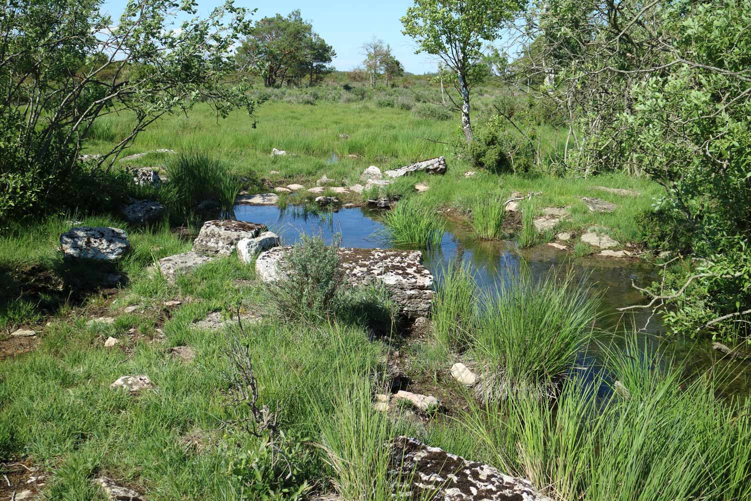 Strax väster om Möckelmossens infoplats och nära vägen finns en källa.