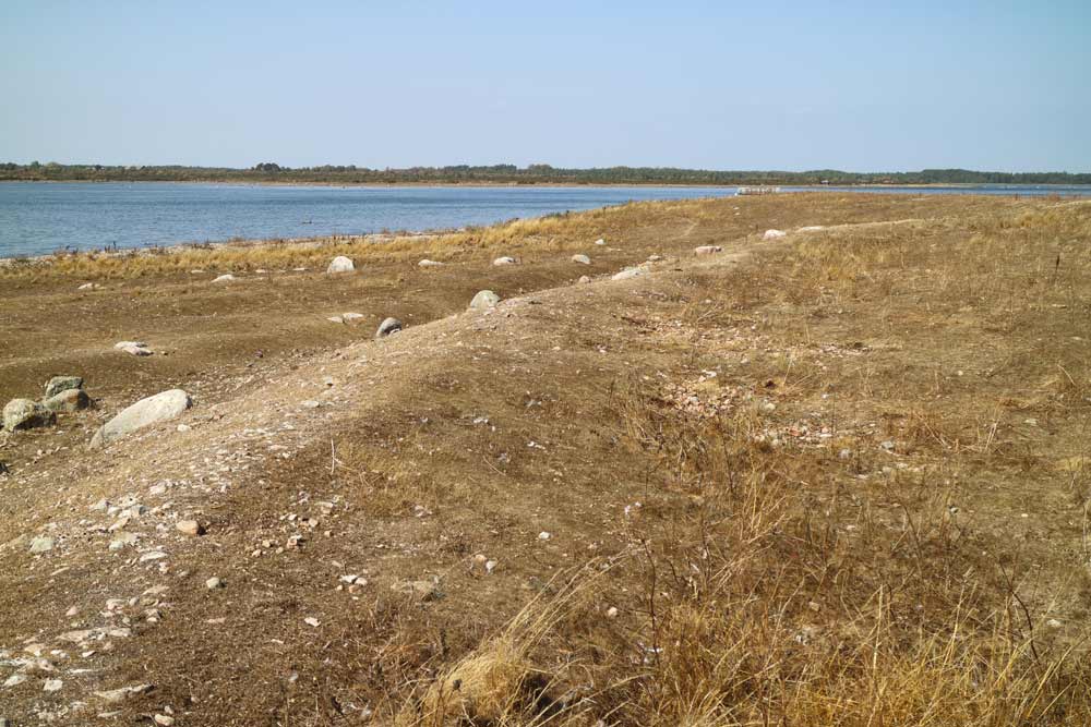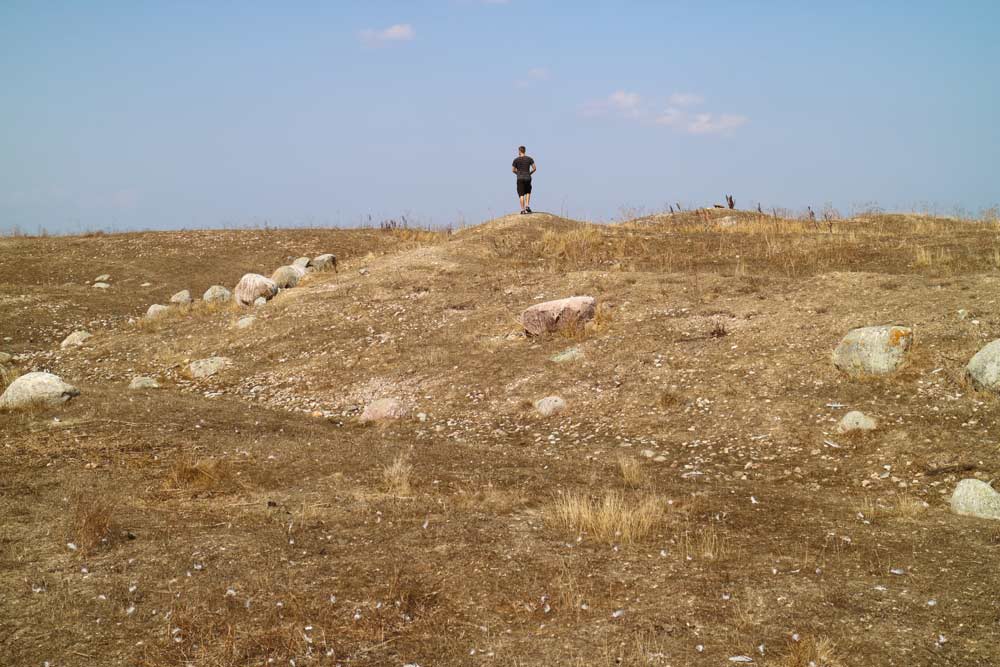 Öster om denna ligger en cirkelformad vall av sten, nedrasad och ungefär 0,75 meter hög idag. Cirkeln har en diameter på 30 meter och innanför den finns det en ytterligare en låg cirkelformad vall. I mitten av anläggningen finns en 7x7 meter stor grund. Sommaren 2018 syntes grunderna tydligt på grund av torkan.