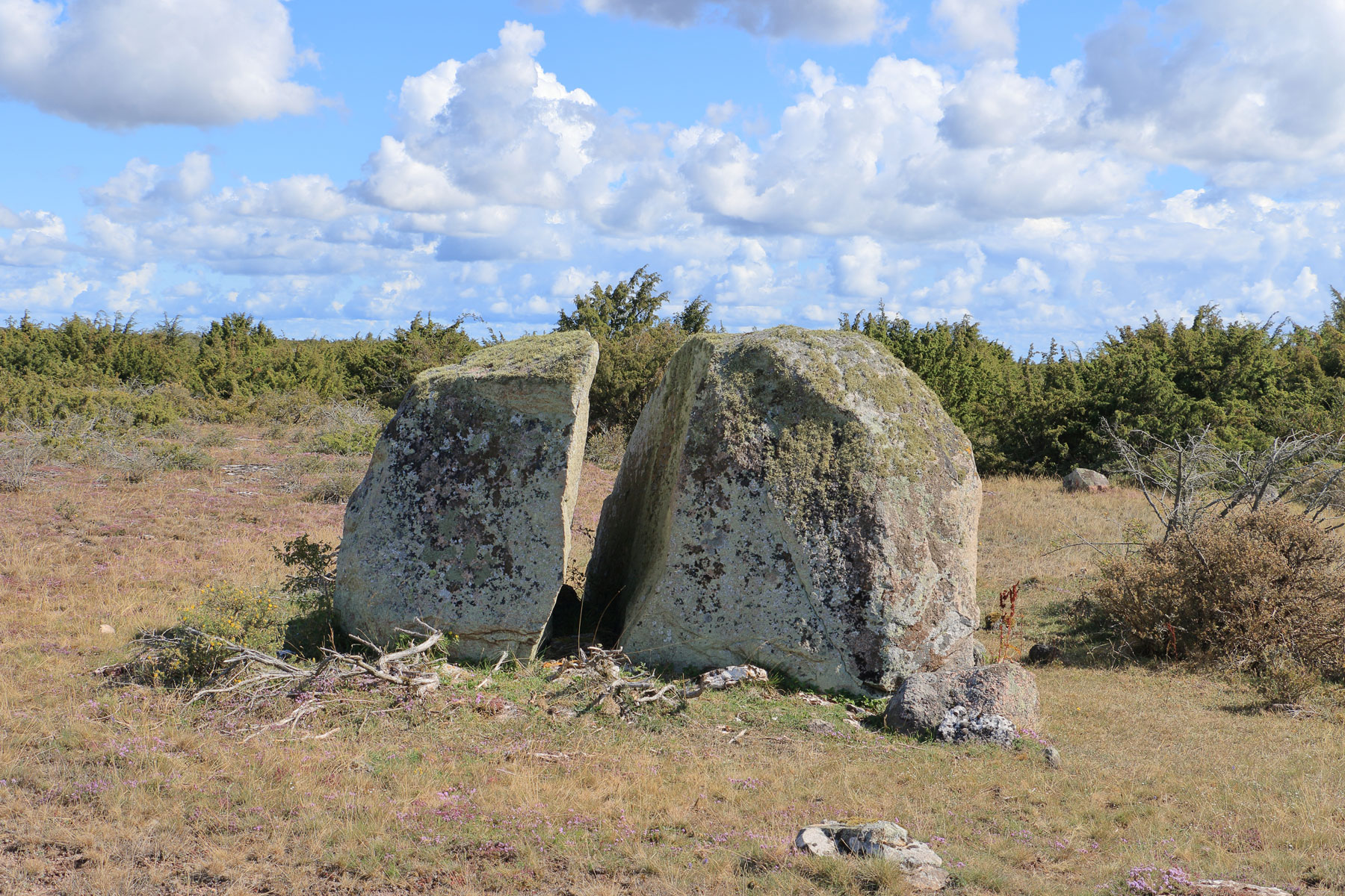 Ett stort flyttblock som spruckit itu. Det är 3 x 2,5 meter stort och 1,7 meter högt. Blocket är delat i två