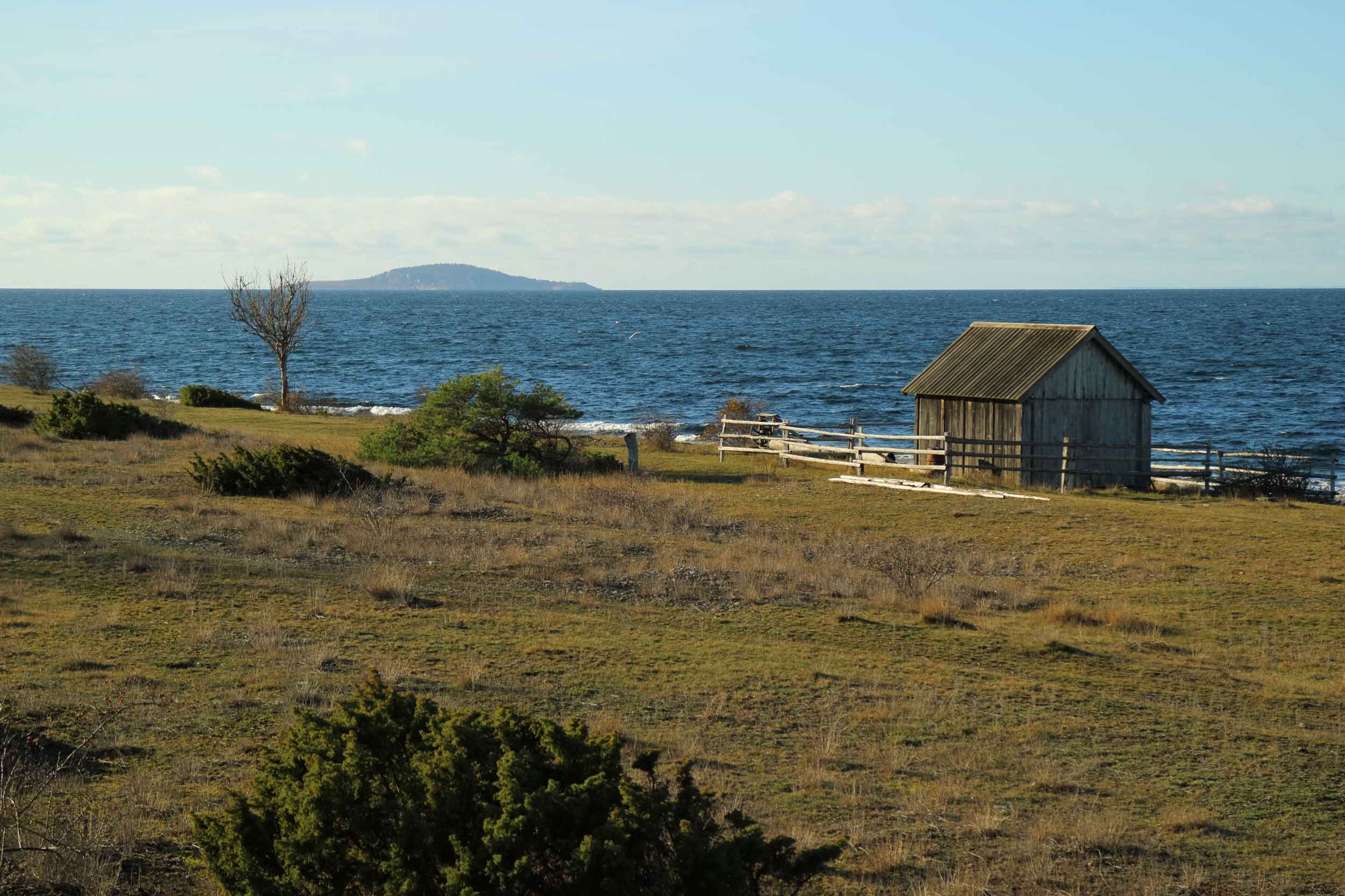 Man färdas långsamt på den lilla kustvägen mellan Byxelkrok och Hagaskog. En gammal kalkugn finns strax innanför stranden. I norr finns Café Haget och Sjöbodar vid Haget.