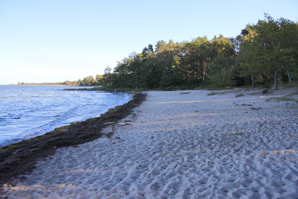 Badbrygga, WC, sandstrand och gräs. Barnvänligt med långgrund sandbotten. Beläget i Glömminge socken, västra Öland, 9 km norr om Ölandsbron
