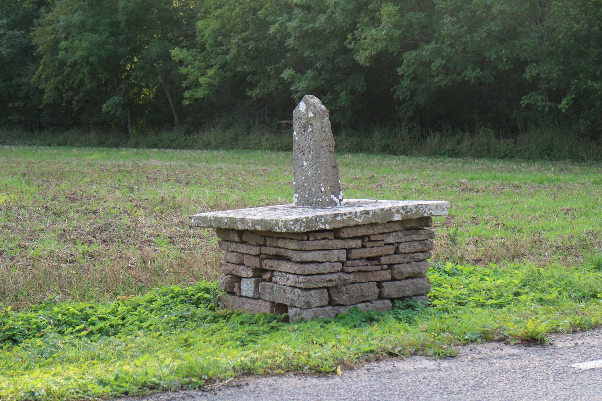 Milstenen har ingen text. Den har renoverats i modern tid. Stenen är vriden ett kvarts varv mot vad som är brukligt. Den är inte heller av rätt typ.