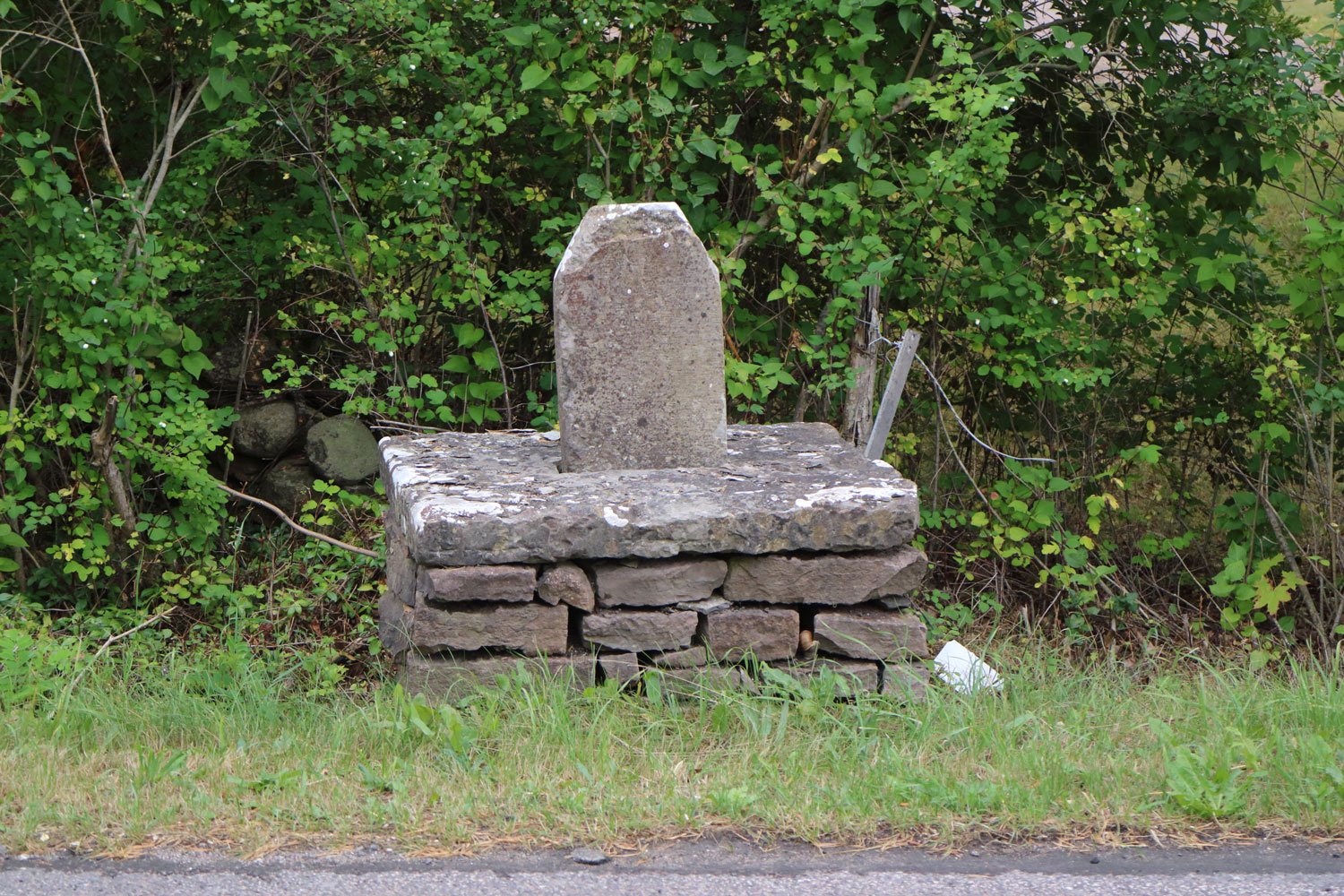 Milstenen står vid 136:an strax söder om nerfarten till Stora Rör. Den har en svårläslig text som möjligen kan tolkas som 1/4 MIL.