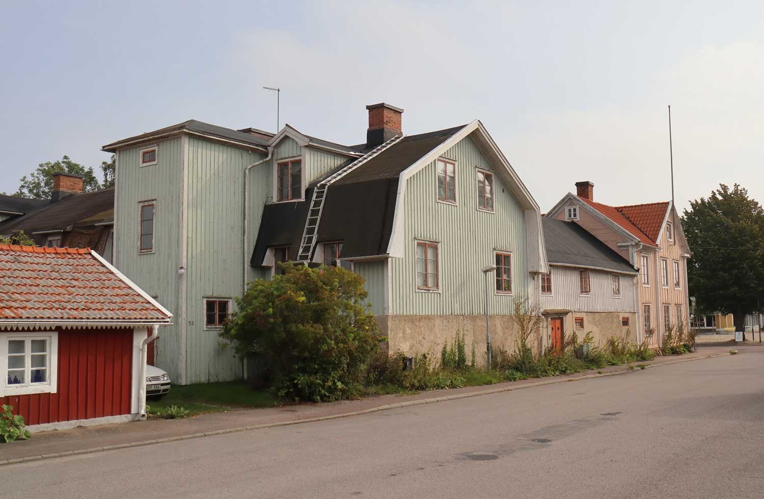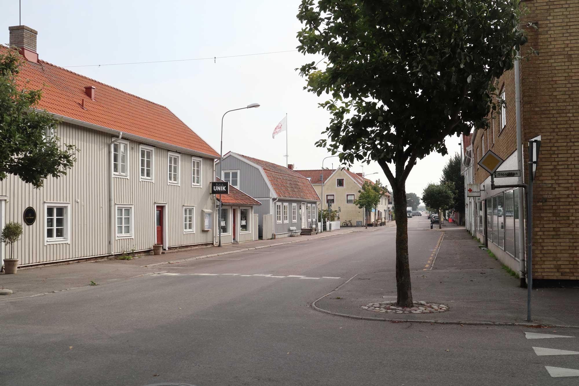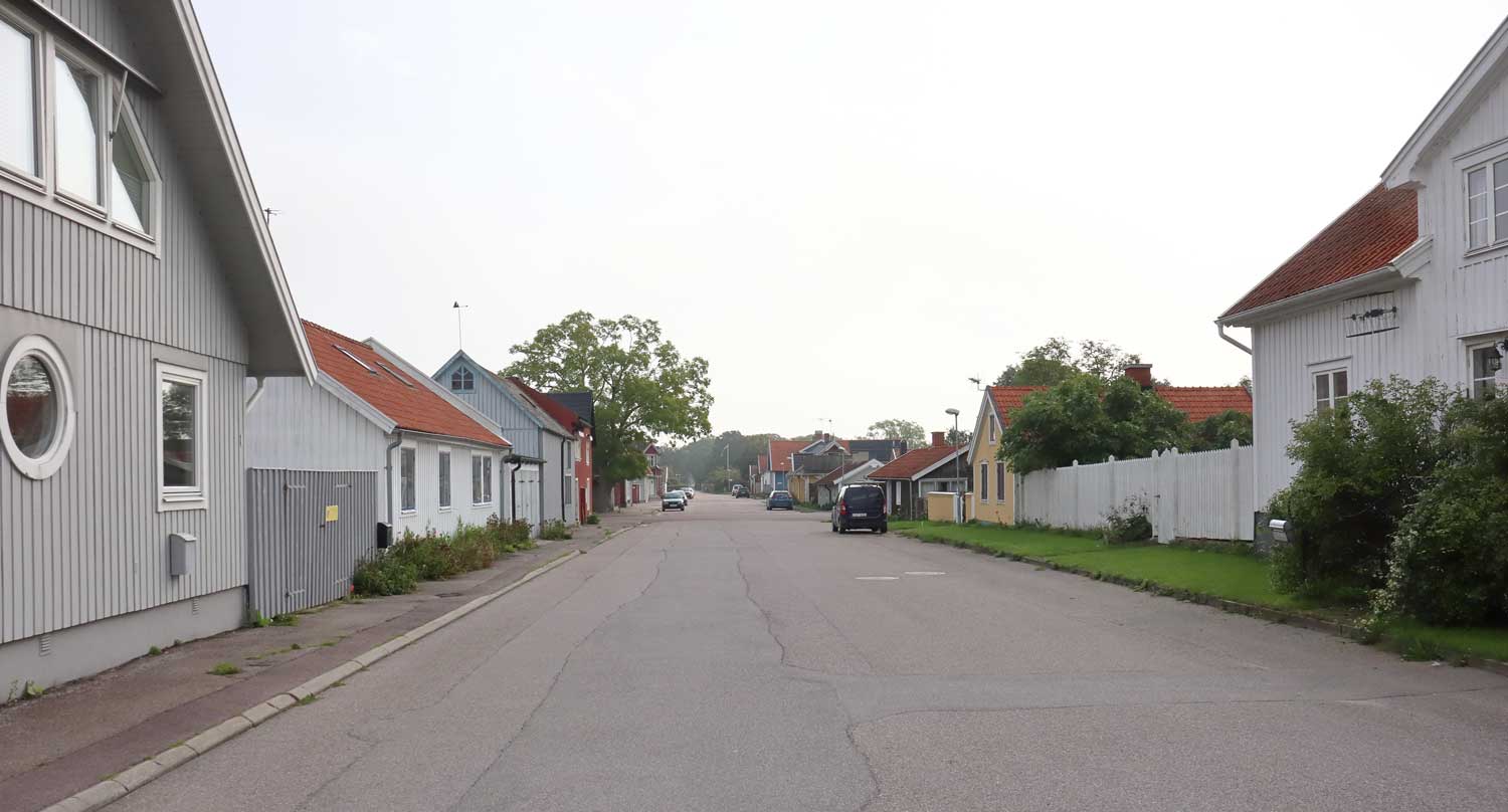 Bebyggelsen söder om torget är genomgående småskalig och bostadshusen ligger omgivna av stora, lummiga trädgårdar. Utefter Västerlånggatan och Storgatan ligger flera mindre stugor i liv med gatan. Flera av dess små stugor är byggda under 1800-talet och här bodde sjöfolk, fiskare och arbetare. Många av dessa stugor är exteriört bevarade och utgör ett karaktäristiskt inslag i denna del av tätorten.