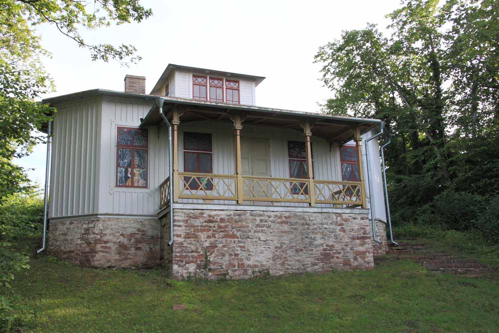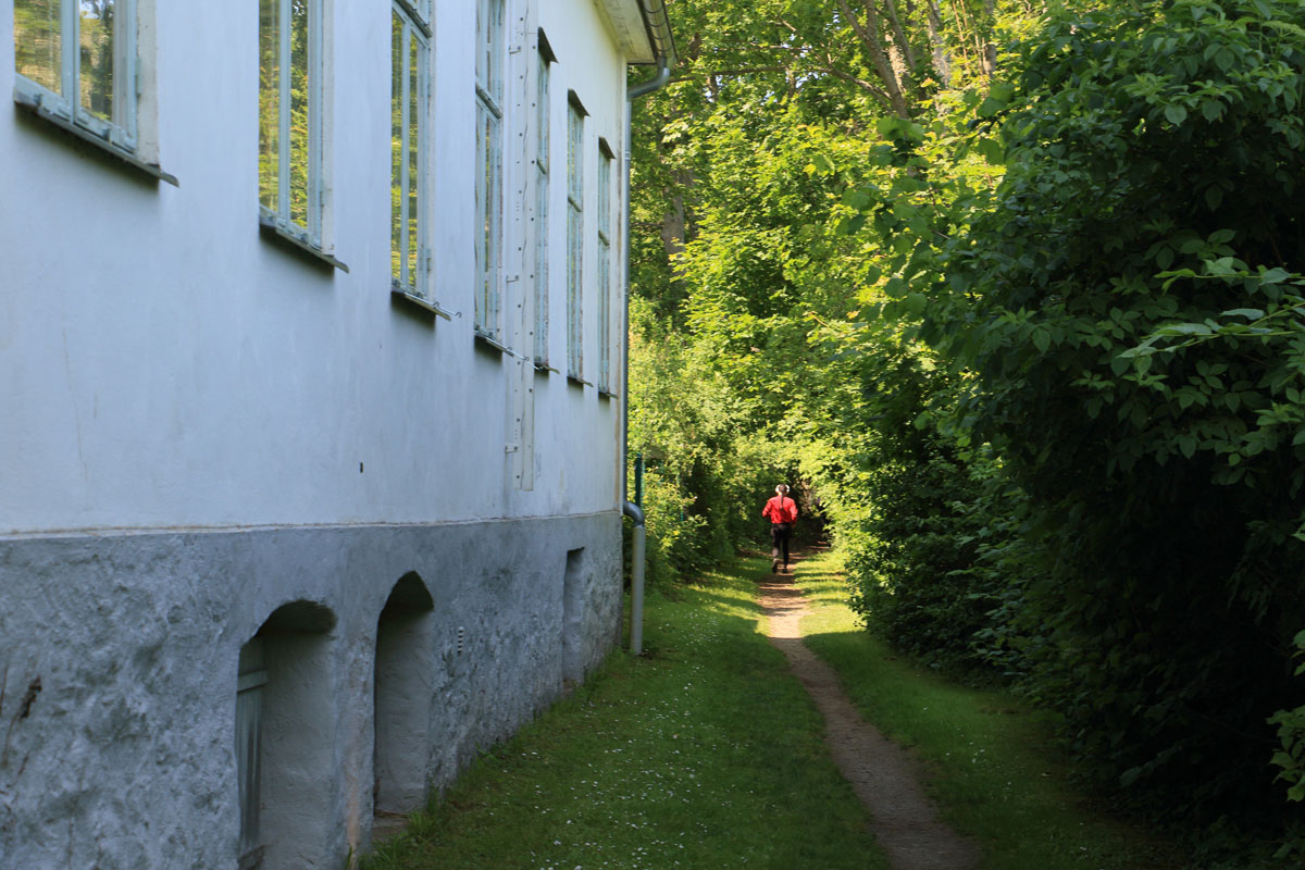 Vid Drottning Victorias vilohem passerar stigen utefter en av byggnaderna ut till riksvägen.