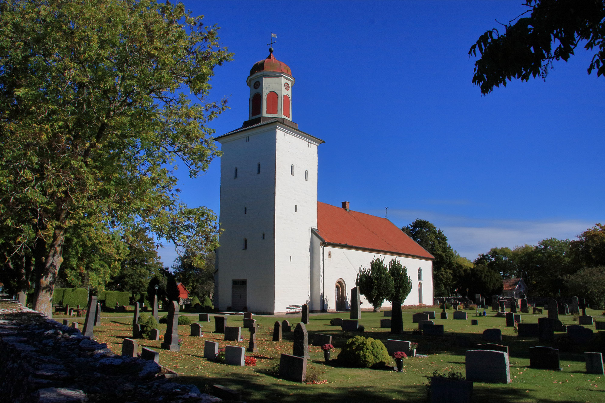Intill kyrkan finns den välbevarade prästgården från 1825. Här finns också en tiondelada i kalksten. Utanför kyrkogården finns små- och folkskola från tidigt 1900-tal samt tre lärarbostäder från 1900-talets andra del. På ömse sidor om kyrkan har två handelsbodar legat.