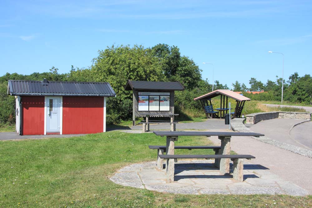 Trafikverkets rastplats vid väg 136 vid Resmo. Handikappanpassad vattenklosett. Fin utsikt över Mörbylånga-dalen och Resmo by. Två väderkvarnar, Mysinge hög och Gynge hög ligger alldeles söder om rastplatsen.