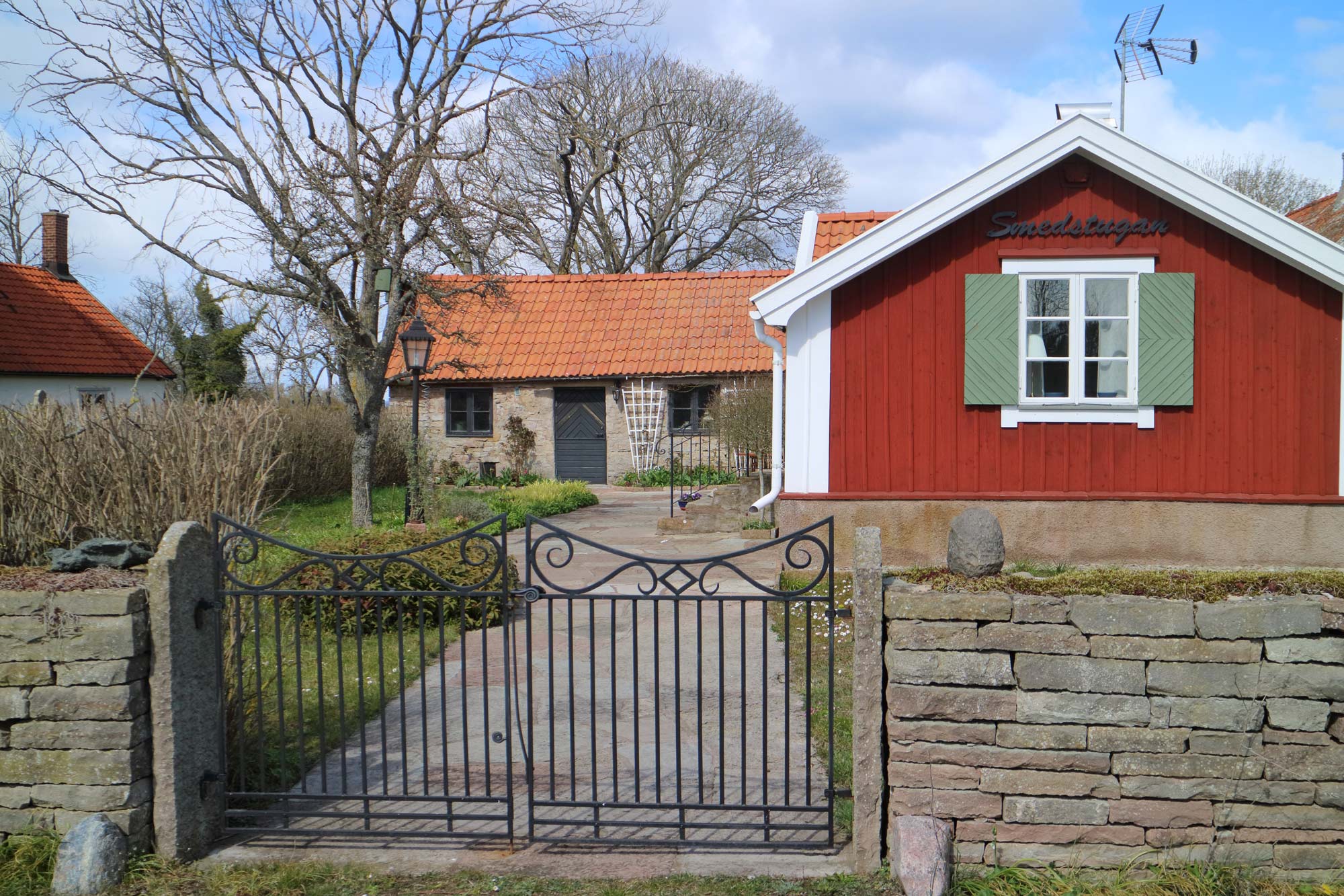 Smedstugan ligger invid den östra kyrkogårdsmuren.
