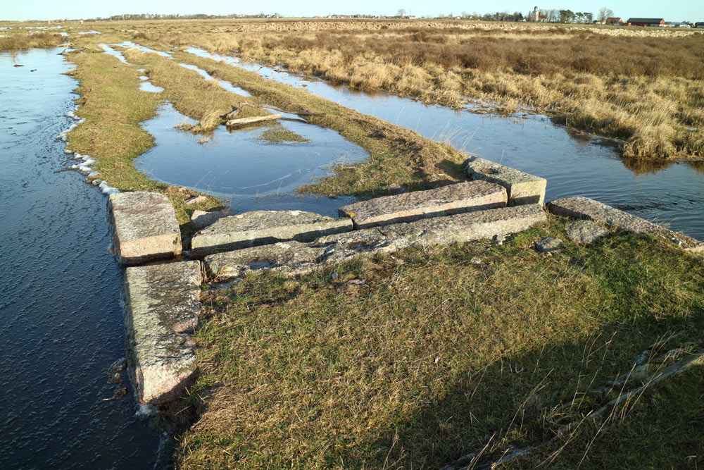 På den här sträckan finns rester av den gamla järnvägen, såsom grindstolpar vid passage av alvarväg, kvarlämnade sliprar och gjuten passage för vatten genom järnvägsvallen.