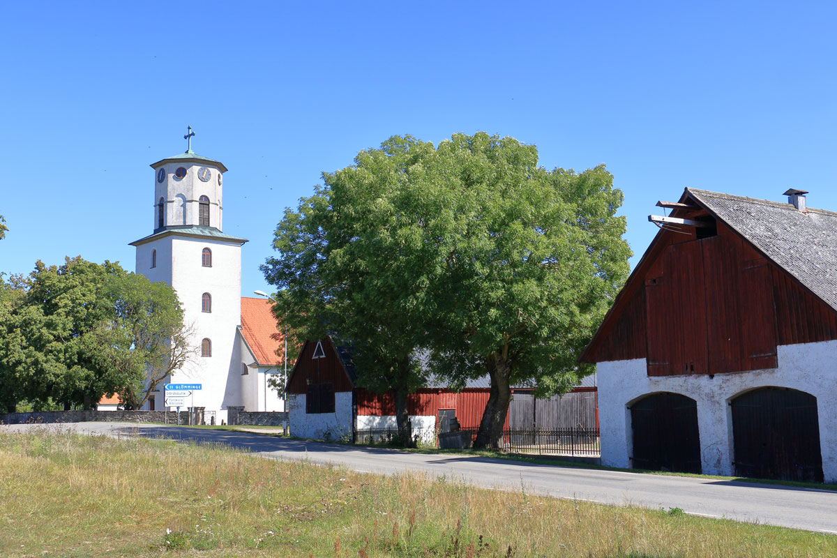 Omedelbart norr om kyrkan, som ligger vid vägkorset mellan nämnda häradsväg och landsvägen, finns prästgården. Denna är uppförd 1828 efter 1700-tallmodell under brutet tak och den rödmålade byggnadens exteriör är mycket välbevarad. Som flygelbyggnader finns en vitputsad och ålderdomlig länga i kalksten liksom en rödmålad länga i liggande timmer. Prästgården omges av en kraftig kalkstensmur och har större vårdträd på tomten. Till kyrkomiljön hör även folkskolan från 1872 liksom små-skolan från 1895.