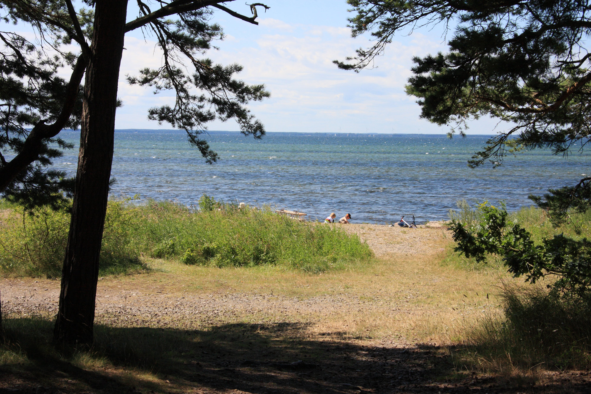 Vid Sandbergen finns en badplats på Ölands västra sida. Naturbad. Gräs. Långgrund sandbotten.