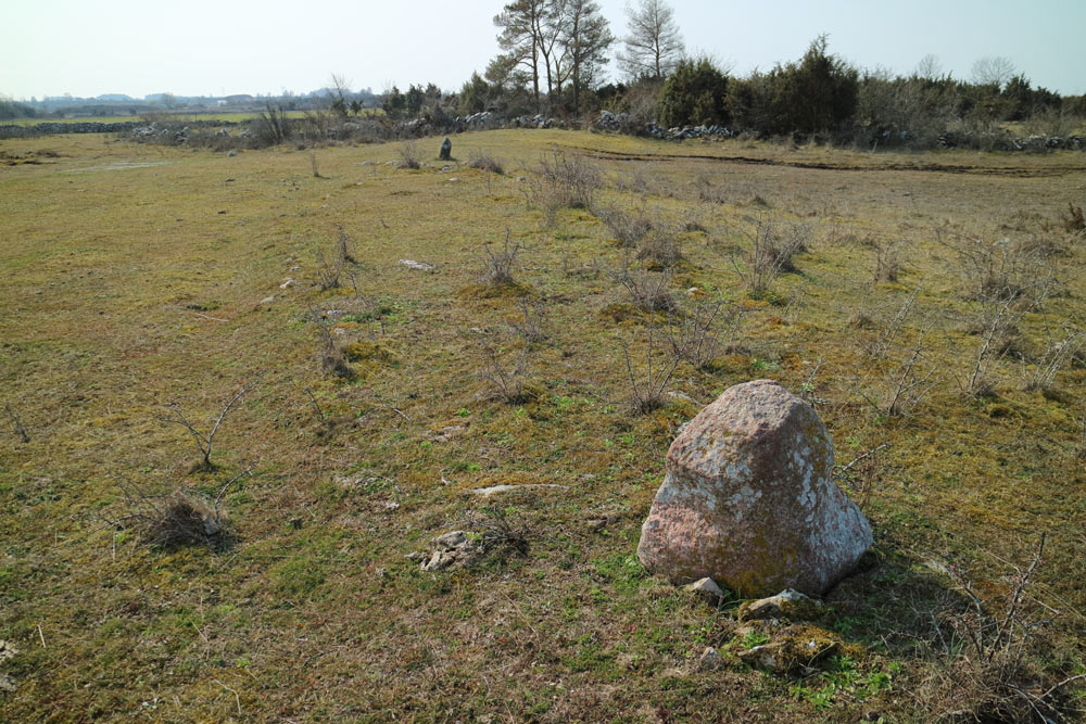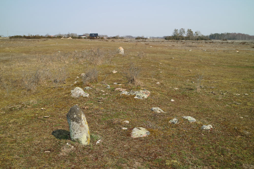 En skeppssättning, 18 x 4 m, bestående av 50 tätt lagda stenar, flertalet övertorvade. I bygden sägs att här ligger en sjökämpe från bronsåldern begravd.