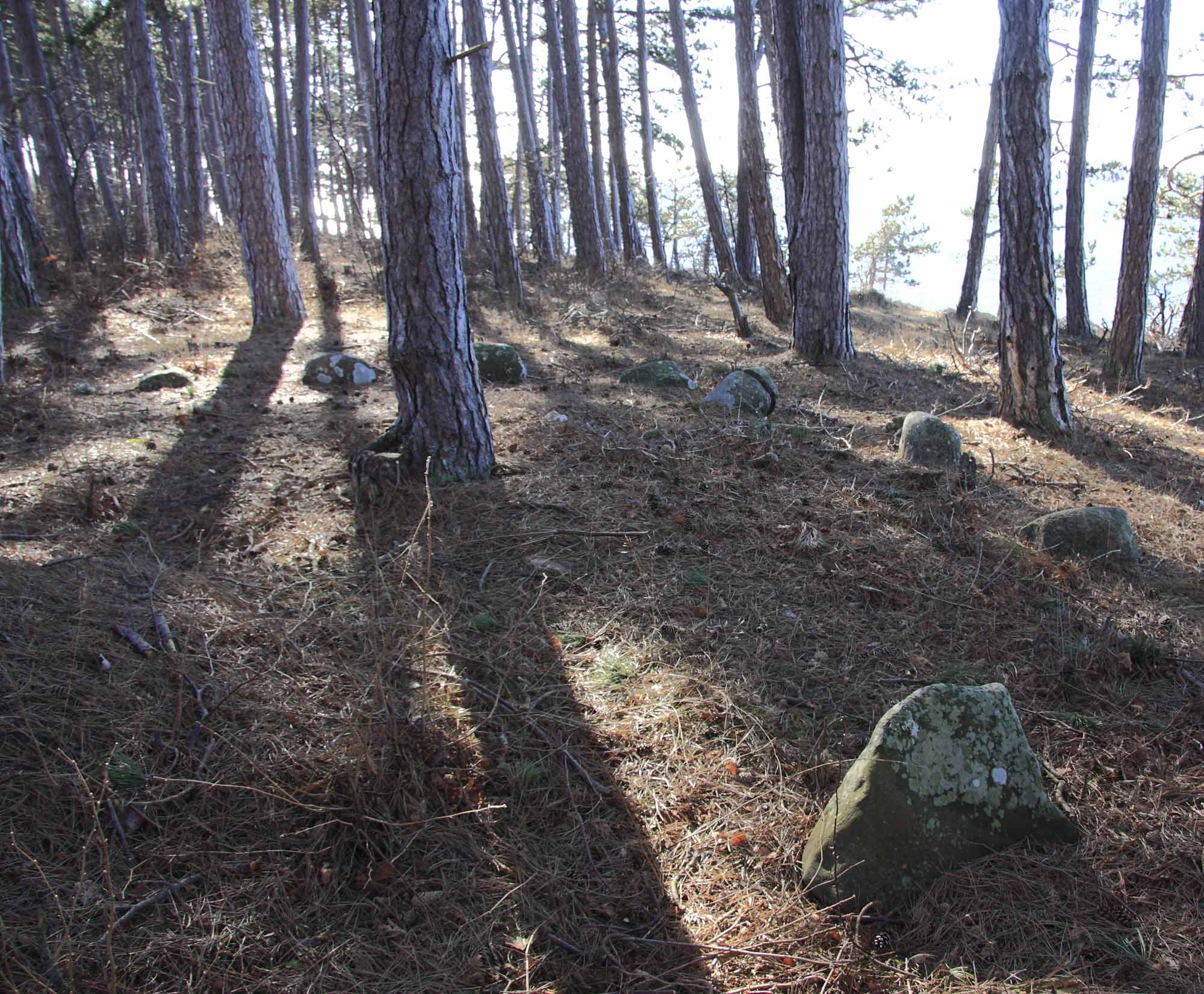 Domarring från bronsålder/järnålder, 7-8 m diameter ursprungligen sannolikt bestående av 19 klumpstenar av granit, av vilka 17 kvarstår på ett avstånd av i regel ca 1 m. Stenarna är klumpformiga, liggande eller resta.