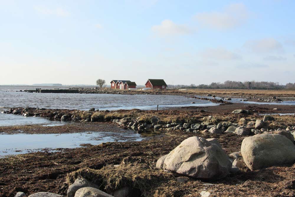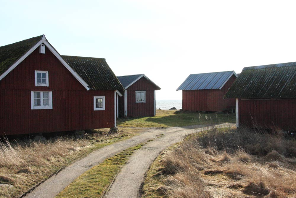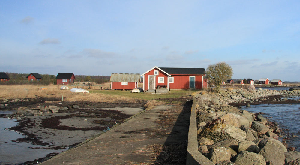 Ute vid kusten ligger här finns fina sjöbodar i trä som tillhör Störlinge by. På vägen ner till störlinge bodar passerar man Tjushög.
