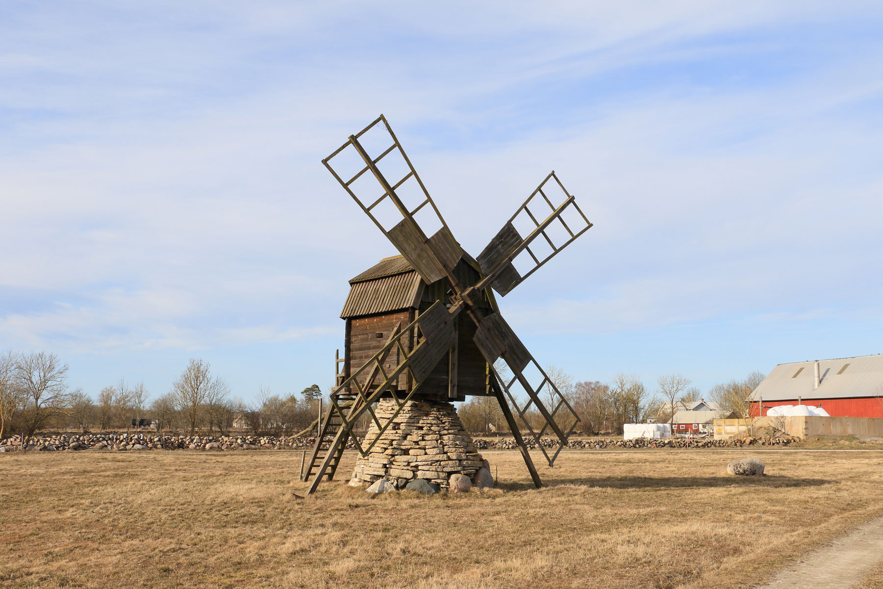 Väderkvarnen står på fastigheten BORGHOLM HÖGENÄS 4:2. Den har stenfot som många kvarnar på norra Öland.