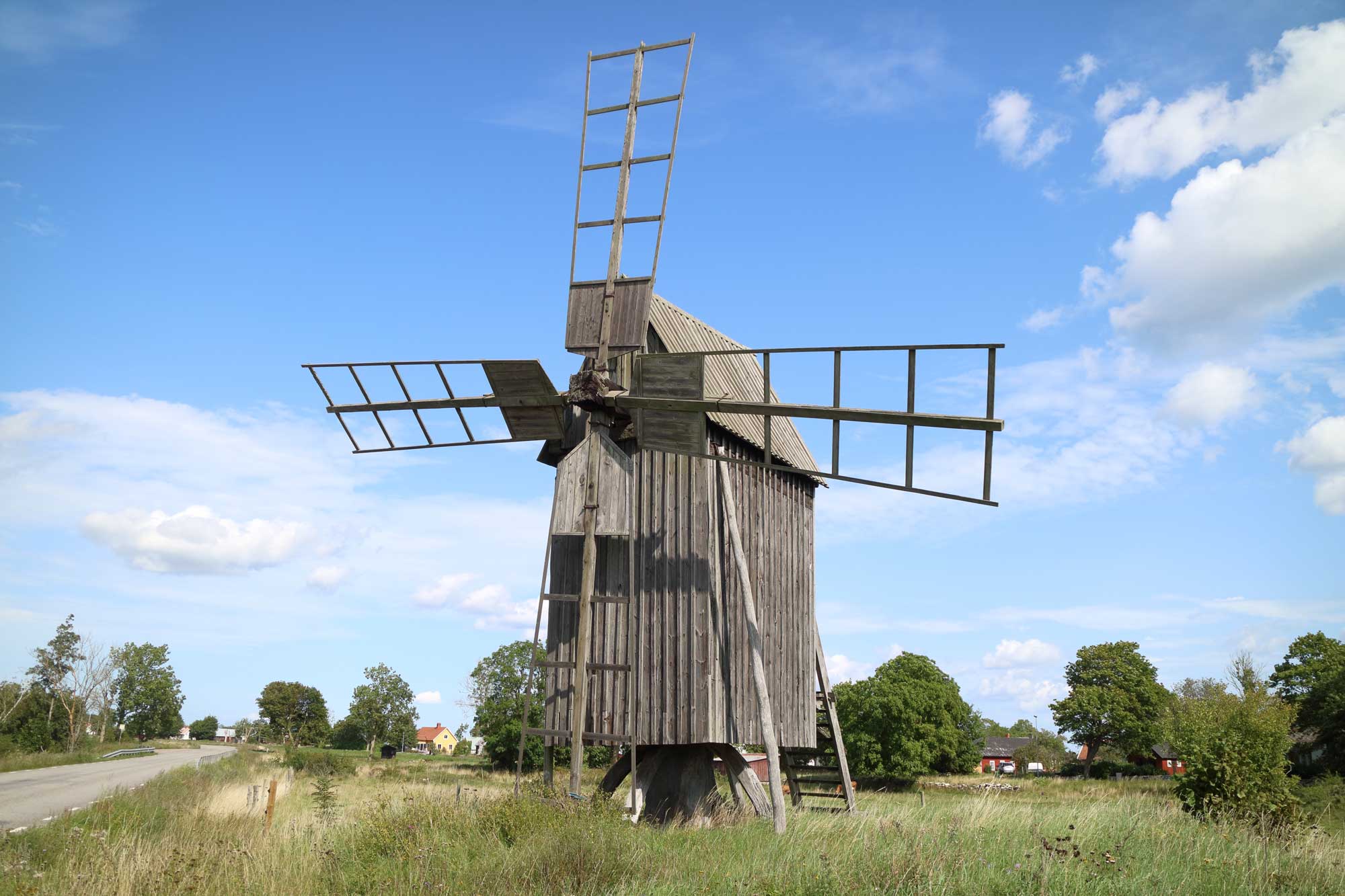Detta är den södra av de två väderkvarnar som finns i Övra Bägby. Den står på fastigheten BORGHOLM ÖVRA BÄGBY 3:3.