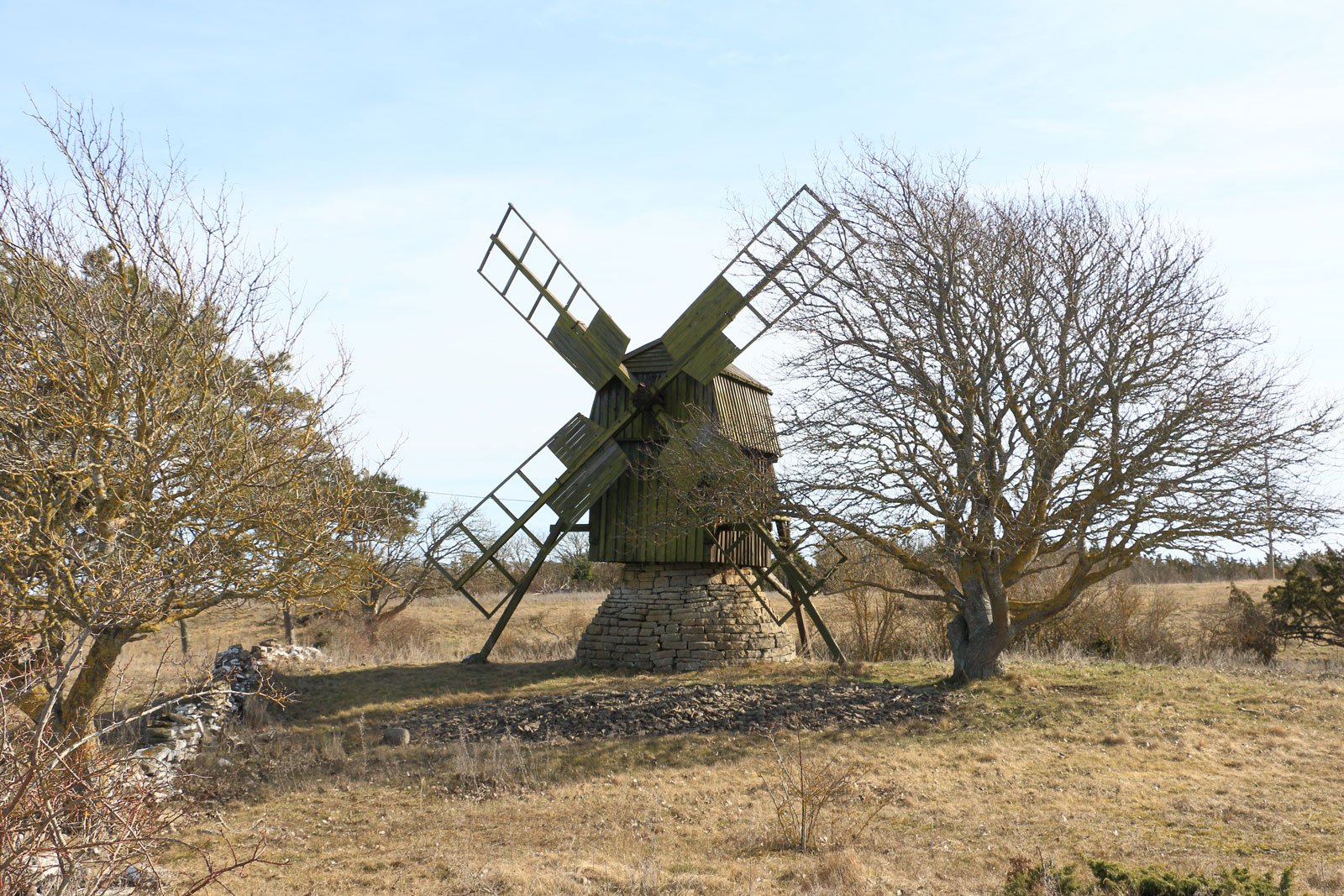 Väderkvarnen står på fastigheten BORGHOLM JORDHAMN 1:1. Den har en stenfot som många andra kvarnar på norra Öland.
