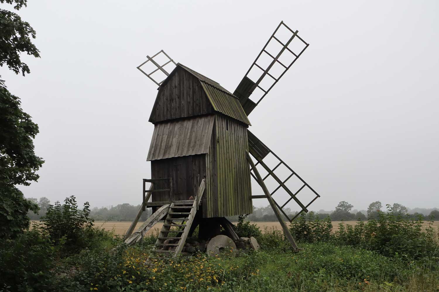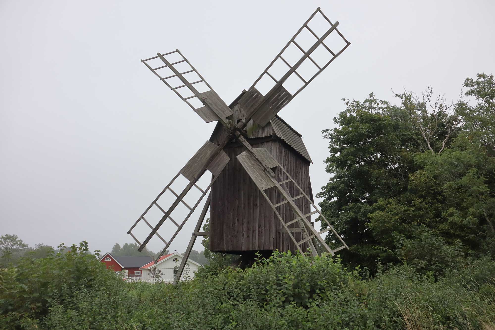 Den här väderkvarnen står öster om Kvigerälla på fastigheten MÖRBYLÅNGA KVIGERÄLLA 6:1