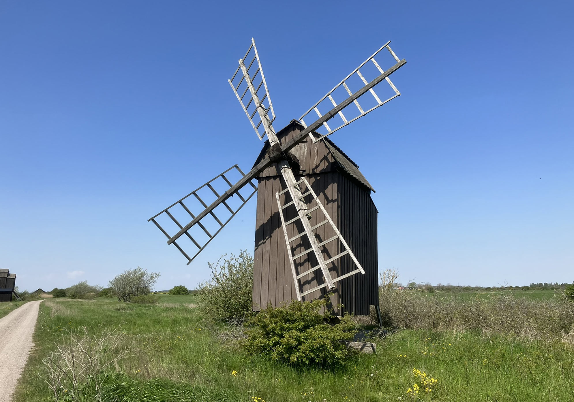 Denna väderkvarn i Össby ligger alldeles väster om landsvägen mitt emot byn på fastigheten MÖRBYLÅNGA ÖSSBY S:1