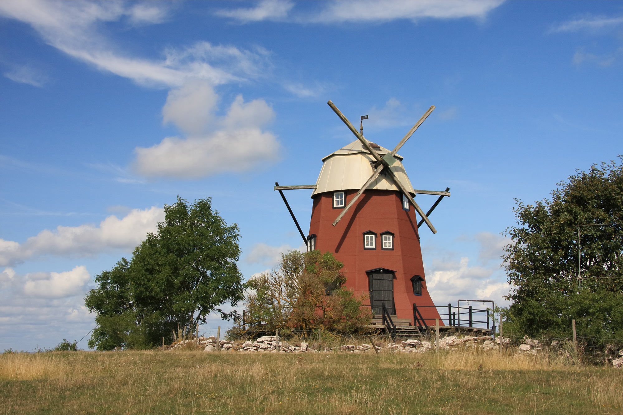 Den här väderkvarnen är en s k Holländare, där vingarna ställs in mot vinden genom att vrida huven på toppen av kvarnen i stället för hela kvarnen som är fallet för stubbkvarnen. Den står på landborgen strax intill väg 136 söder om Borgholm och är ett mäktigt blickfång när man kör där förbi.