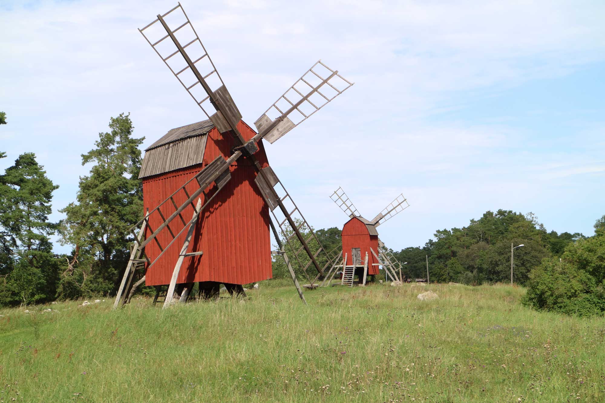 Dessa två väderkvarnar står i södra Störlinge på ett gravfält på fastigheten BORGHOLM STÖRLINGE S:1.
