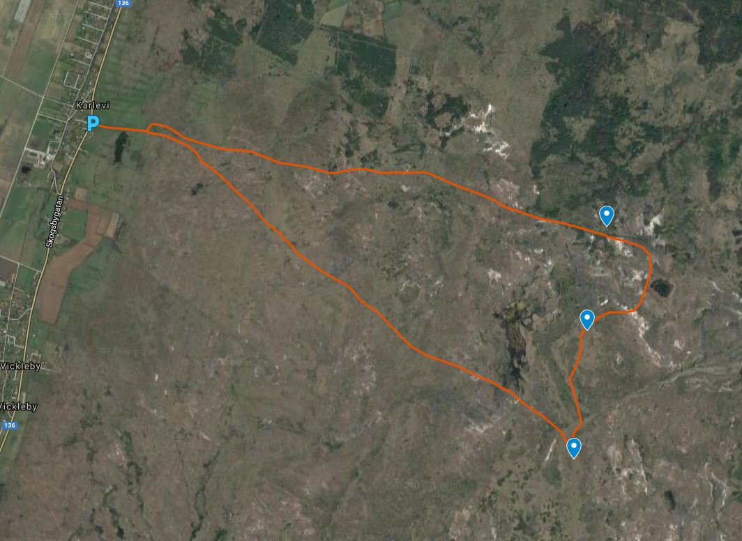 Vandringen går från parkeringsplatsen i Karlevi ut på alvaret, först till Stångerör, sedan söderut till Vitrör och Präströr. Under vägen passerar man orkidérika marker som blommar fint i maj. Från Präströr går man tillbaka mot nordväst till parkeringsplatsen i Karlevi. Vandringen är inte särskilt markerad utom från Präströr tillbaka till Karlevi. Resten av vandringen går man på antingen gamla brukningsvägar eller öppet alvar. På sina ställen kan det vara blött efter regn i mer låglänta partier. Vandringen är ungefär 10 km lång.