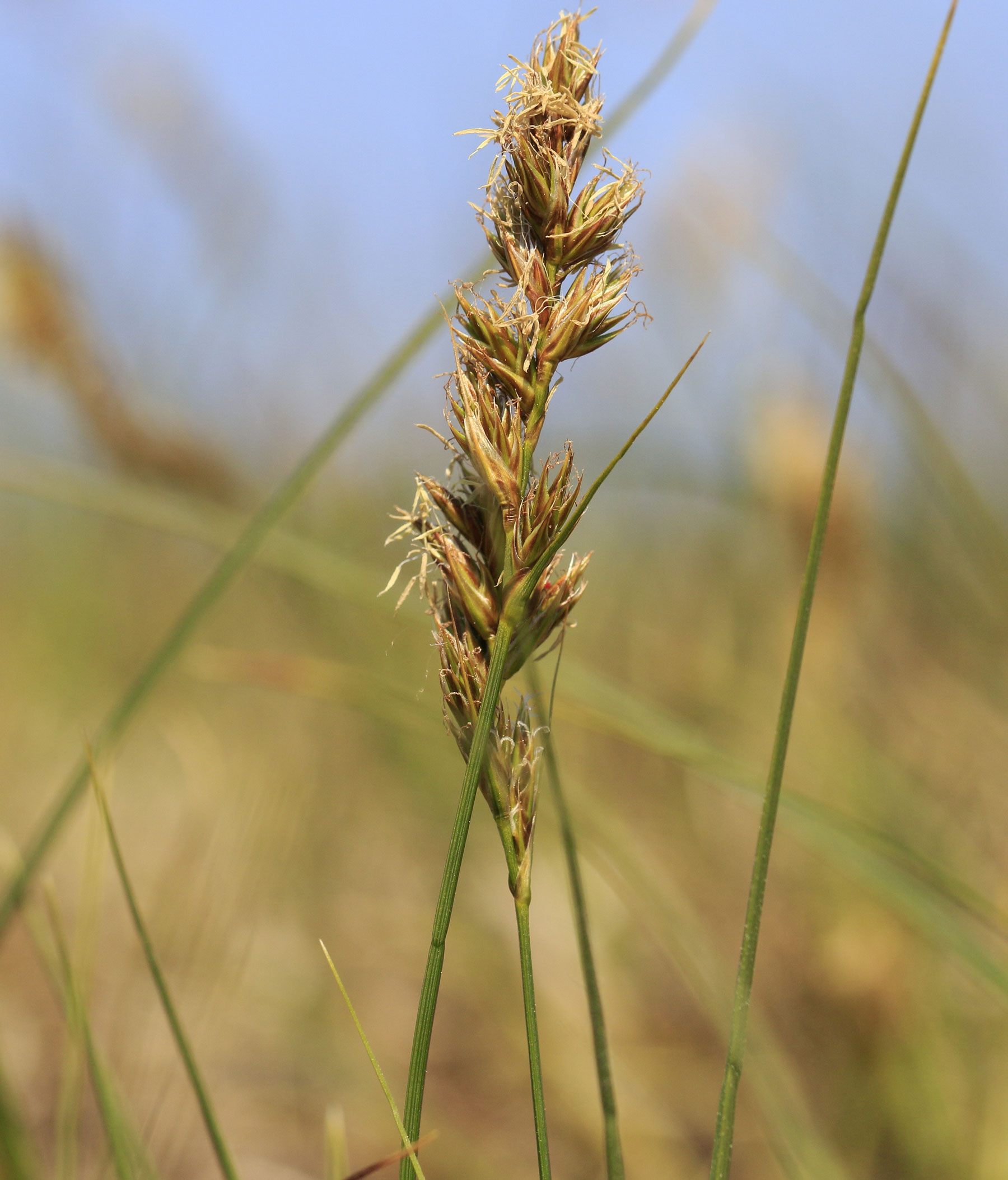 Sandstarren hör främst till de utlakade, oftast ytsura sandjordarna innanför sandsträndernas dyner. Endast ett fåtal växtarter klarar att leva i sandstarrens näringsfattiga och torra miljö. Den har två typer av rötter, djupa respektive ytliga, vilka båda utgår från jordstammen. De djupa rötterna tränger ner i sanden tills de når kontakt med fuktiga markskikt. De rikt förgrenade ytliga rötterna kan ta upp nederbörden. Genom sitt underjordiska rotsystem binder sandstarren marken och bereder väg för arter som inte tål sandflykt. Från den raka, flera meter långa jordstammen växer stråna i karaktäristiska räta rader på den blottade sandmarken.