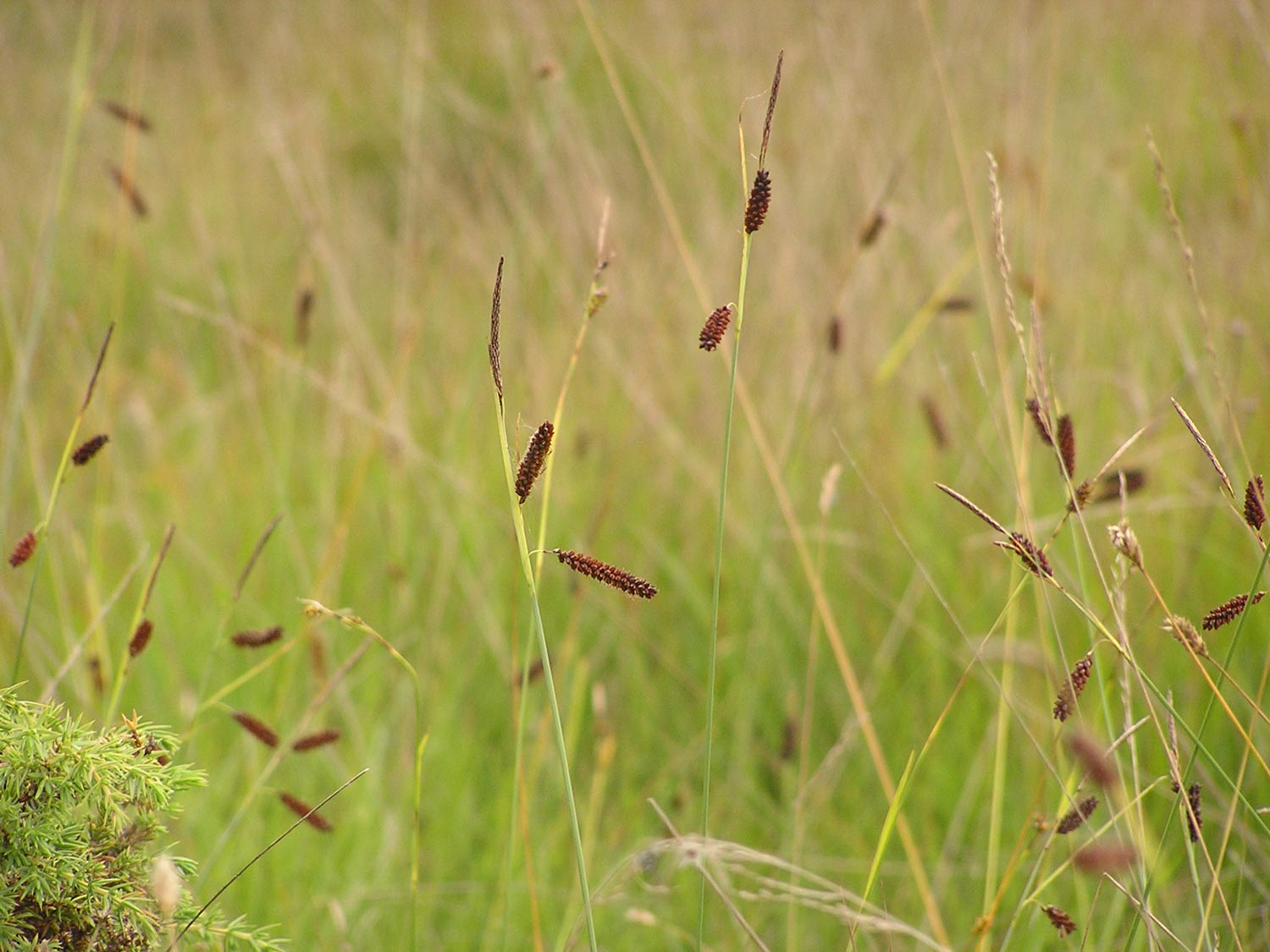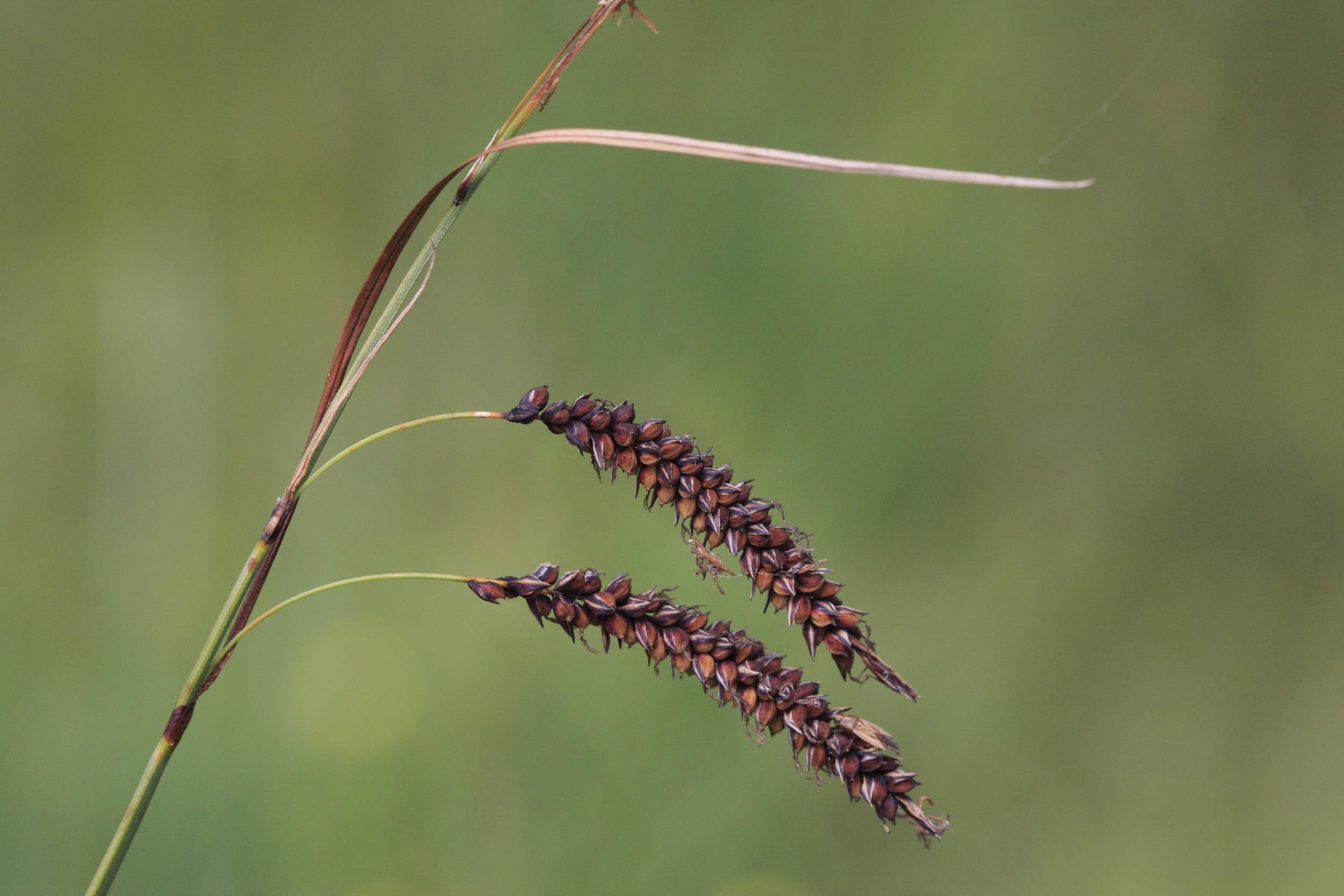 Hanax och honax är åtskilda. De två eller tre hanaxen är mörkbruna och finns i toppen av plantan. Honaxen är vanligen också två eller tre, ganska långa, skaftade och blir till slut hängande. Axfjällen är mörkbruna med ljus mittnerv. Fruktgömmena är först ljusbruna men blir med tiden ganska mörka. Honblommorna har trekantig nöt.