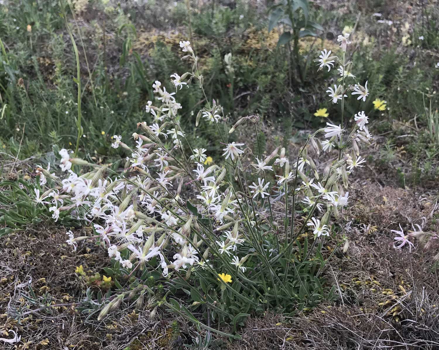 Artnamnet nutans kommer av latinets nutare (luta) och betyder lutande, vilket syftar på blommorna. Släktnamnet uppges komma av grekiskans selas (glans) eller selene (måne), vilket kan syfta på att många av arterna är nattblommande, som nattglim (S. noctiflora).