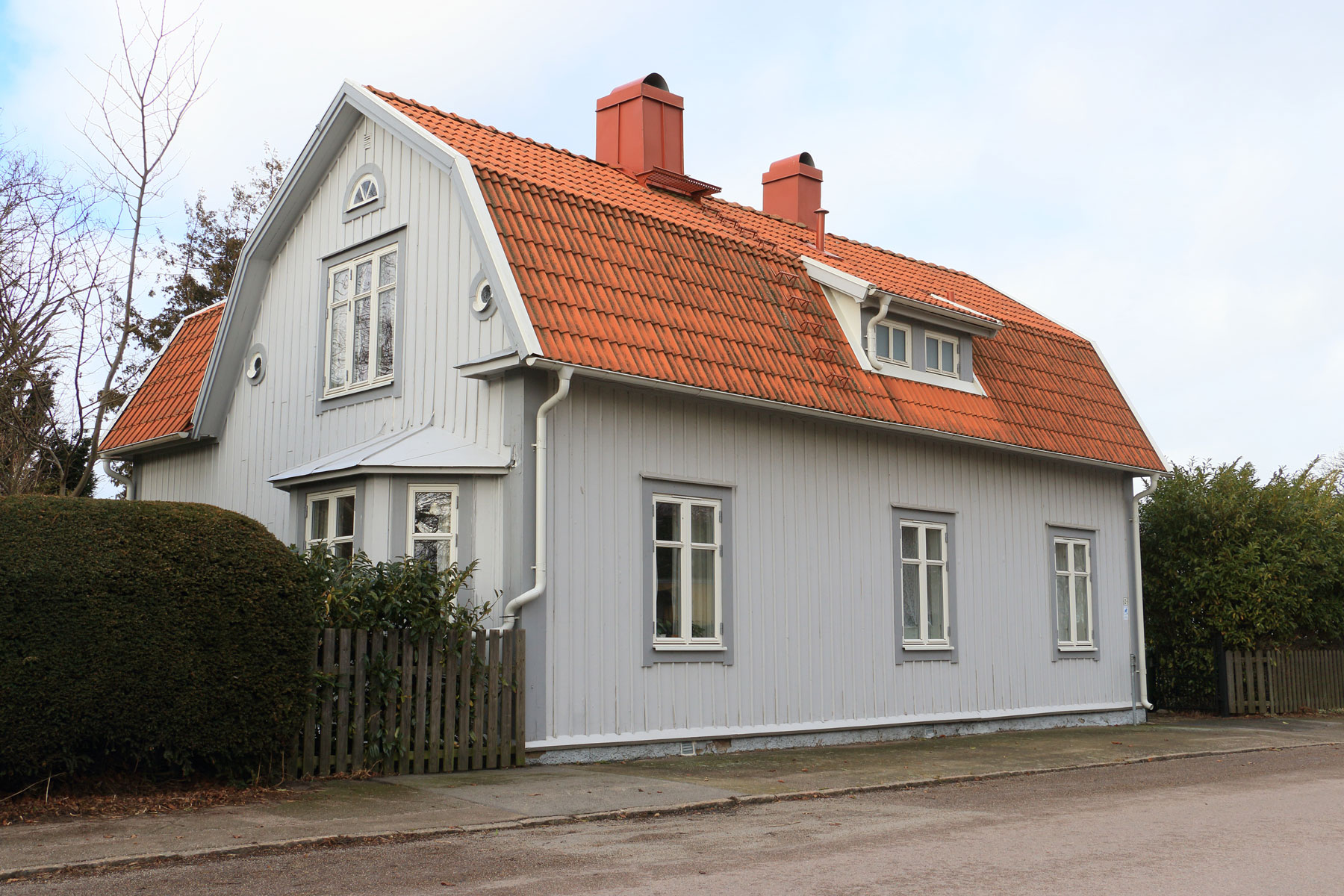 Karaktäristiskt för tjugotalsklassicismen är den ljusa panelklädda fasaden med markerade hörnpilastrar, de ospröjsade korspostfönstren med hörnjärn, burspråket, det brutna tegeltäckta taket med en liten takkupa samt vindsfönstren med dekorativt klassiskt halvrund (s.k. lunettfönster) och rund (s.k. oxöga) form. Placeringen utmed gatan är mycket betydelsefull för gatumiljön och upplevelsen av gamla köpingens 1800-talskaraktär.