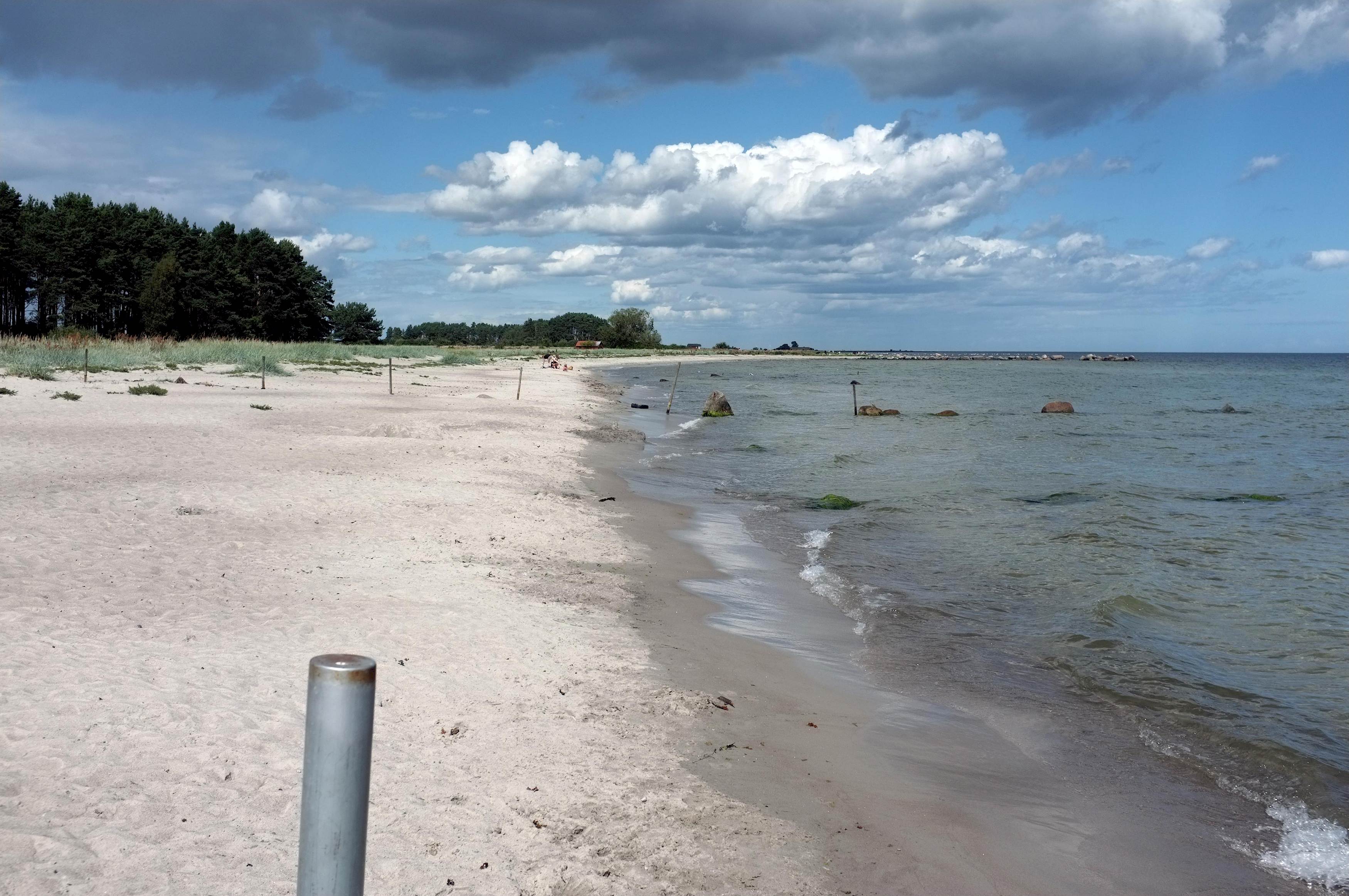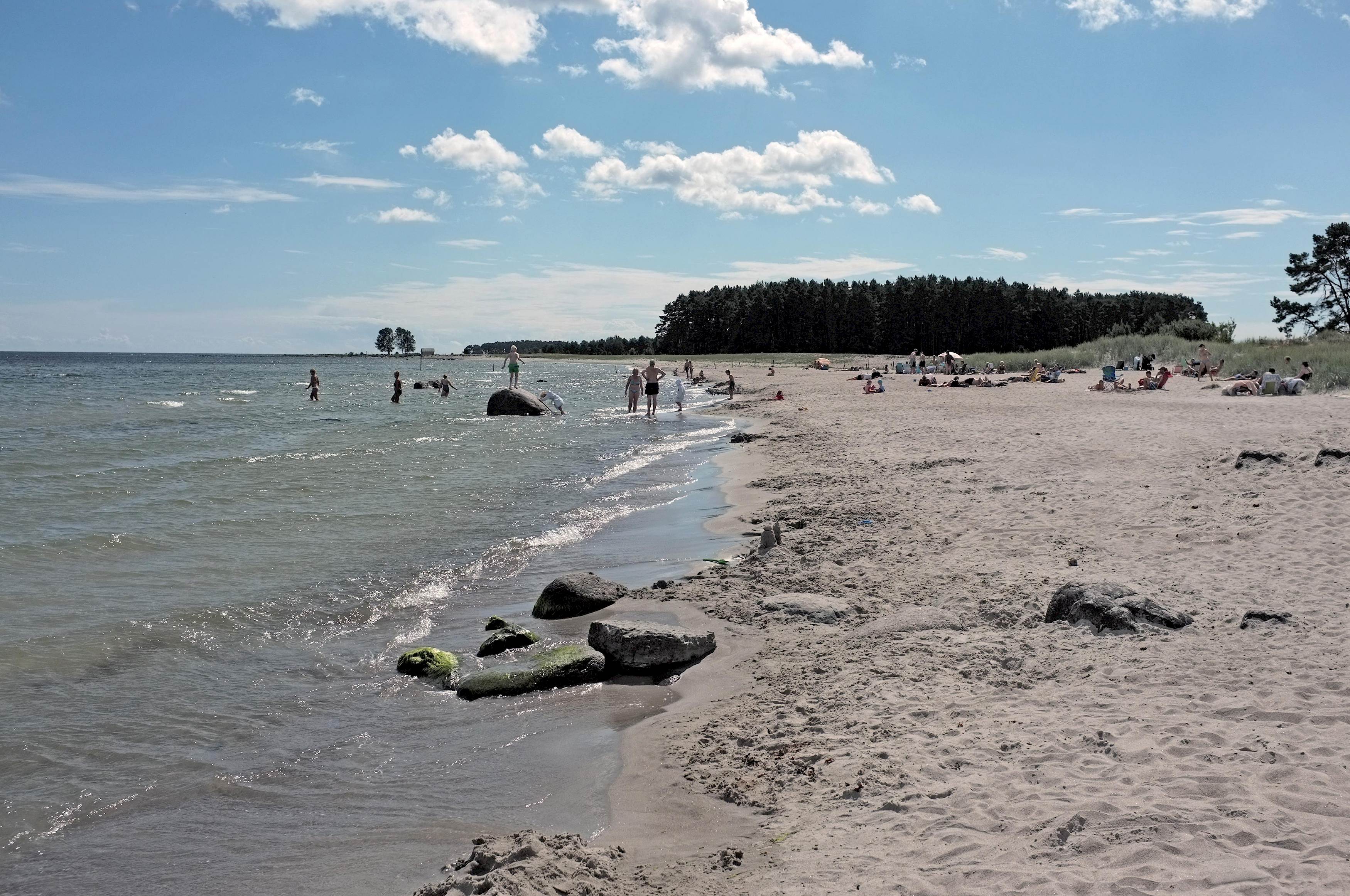 Badplats med en fin, långgrund, sandstrand och brygga. Norr om badplatsen finns ett hundbad. Camping finns i anslutning till stranden. Torrdass och kiosk som är öppen under högsäsong finns också. Markägaren tar 20 kr för parkering. Vägen till badplatsen är av grus och stenskott kan förekomma. Tänk på att ta det lugnt vid möten på upp- och nerfart till badplatsen då vägen är smal och buskage och träd växer tätt intill vägen.