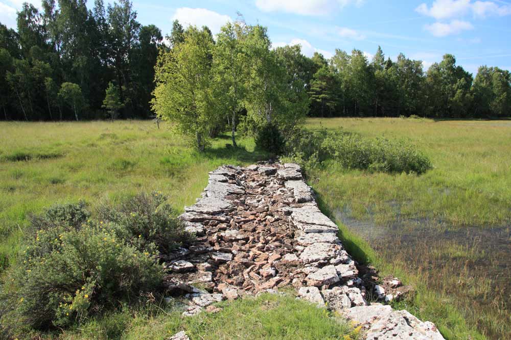 Detta är en drygt 100 m lång gammal vall för att dämma vatten som kommer från Kritmossen uppströms. Vallen är av skalmurskonstruktion med 0,5-1 m kalkstenshällar lagda i 10-15 skift och med fyllning av kalkstenar. Enligt uppgift från ortsbor skall här funnits en skvalkvarn. Inga spår av denna finns nu att se.